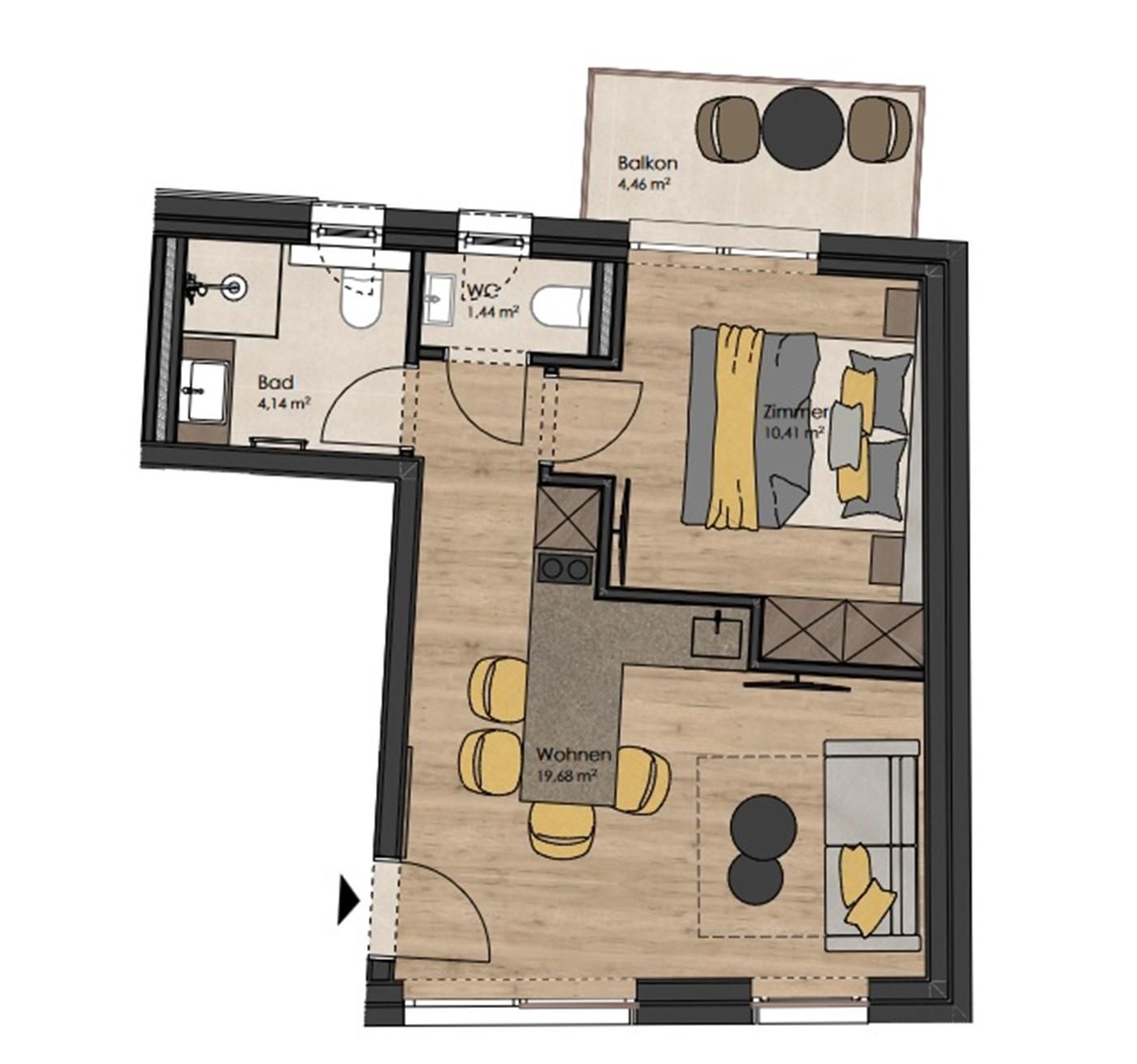 Insgesamt stehen vier Appartements mit Wohnflächen von 36 bis 67 m² zur Verfügung. Alle Wohnungen sind modern ausgestattet und verfügen über einen eigenen Balkon.