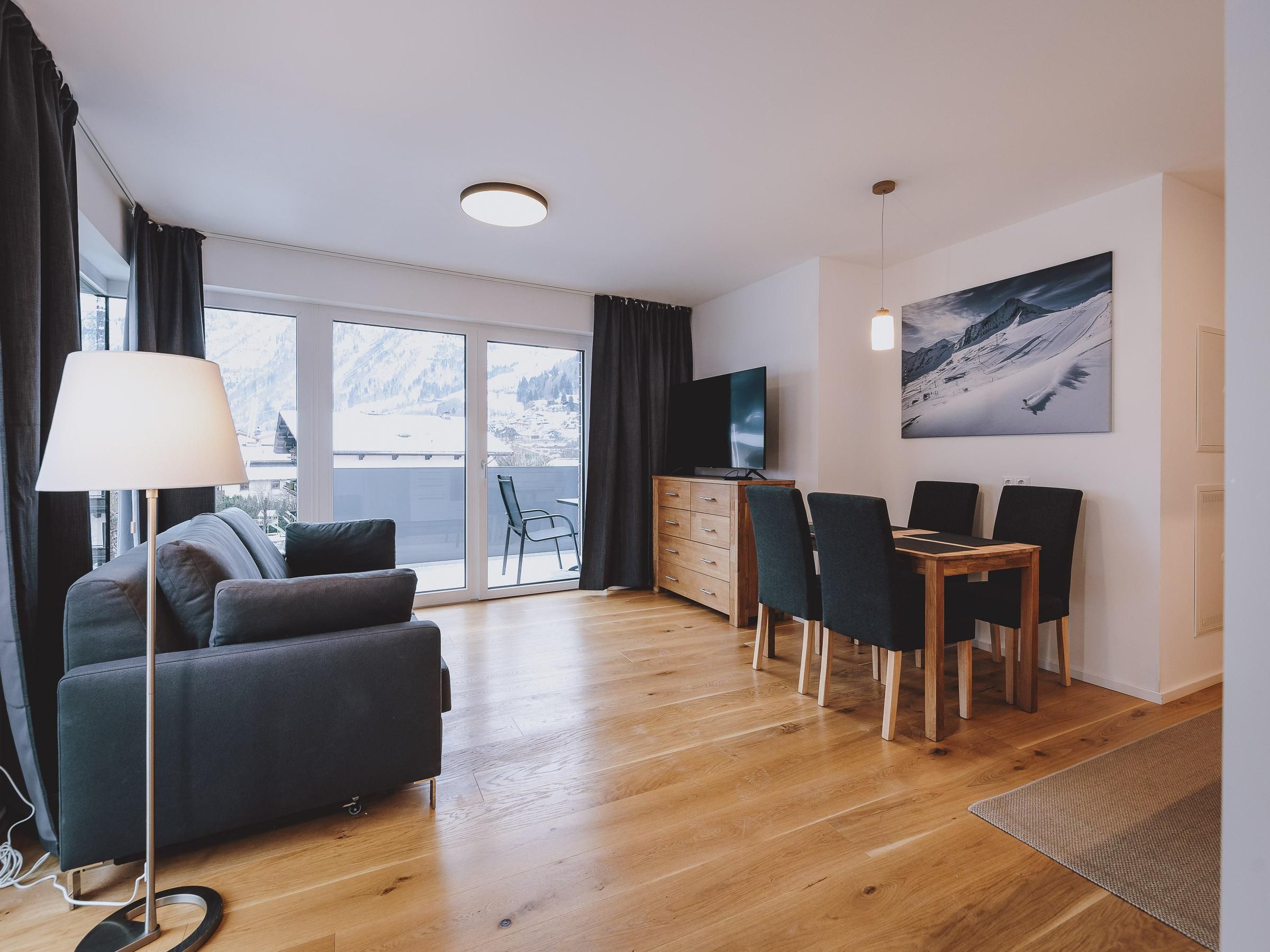 Das Apartment ist geschmackvoll eingerichtet und verfügt über ein gemütliches Schlafzimmer sowie ein stilvolles Badezimmer. Das Wohnzimmer bietet ein ausziehbares Schlafsofa und einen atemberaubenden Blick auf die umliegende Bergwelt. Die voll ausgestattete Küche lädt zum Zubereiten köstlicher Mahlzeiten ein. Ein südseitiger Balkon mit ca. 10m² bietet die Möglichkeit, die frische Bergluft zu genießen und die das traumhafter Panorama zu genießen.