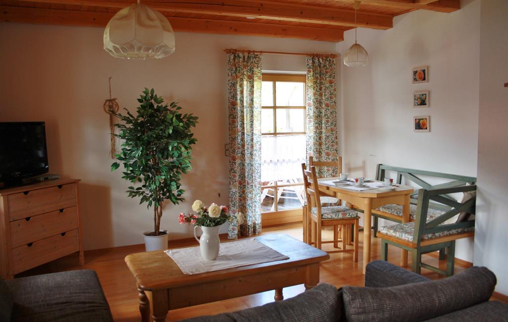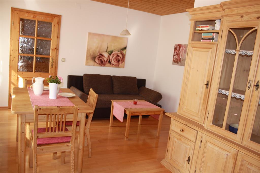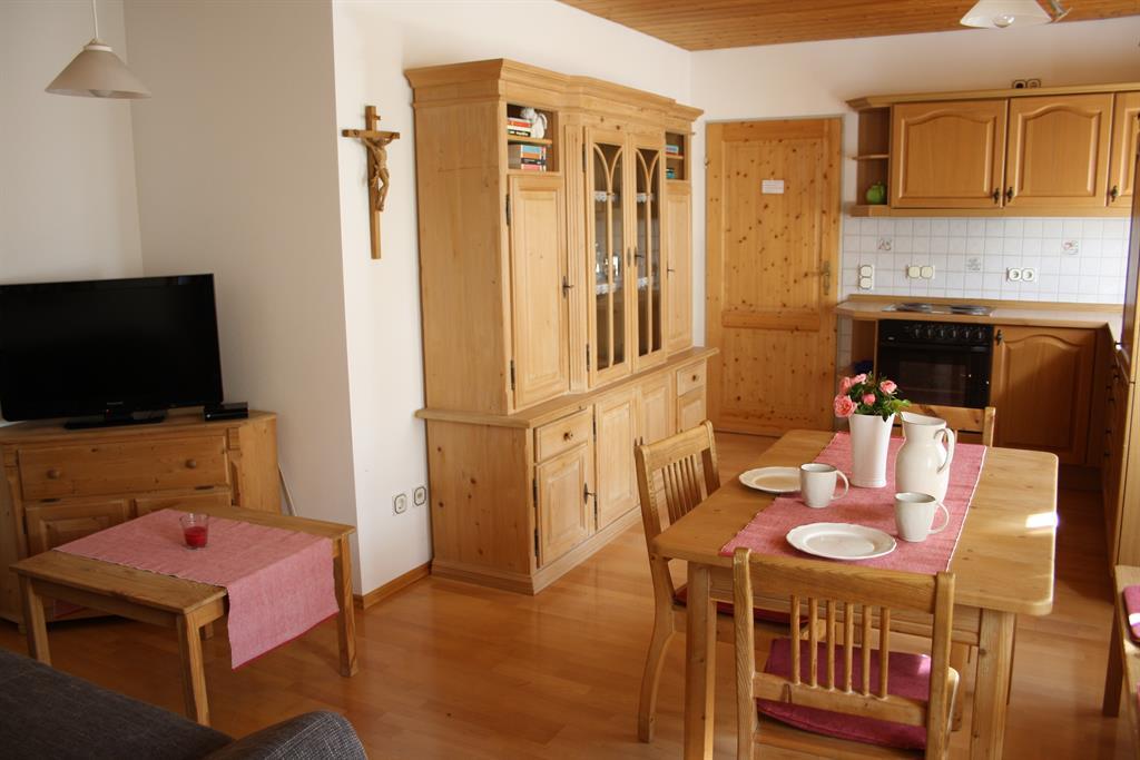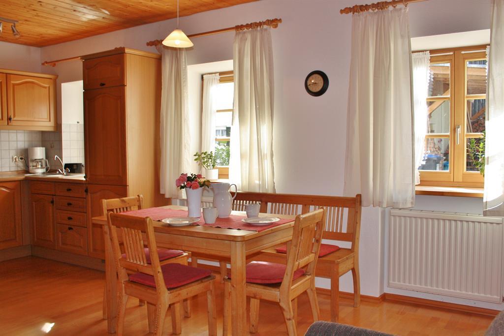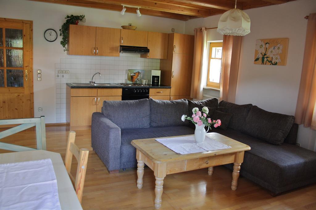 Die im Erdgeschoss liegende ca. 40 qm große freundliche Ferienwohnung mit eigenem Eingang, für 1-2 Personen ist mit schönen Holzmöbeln zeitgemäß eingerichtet. Die Wohnung verfügt über eine helle gutausgestattete Wohnküche mit Couchecke, ein gemütliches Schlafzimmer, Bad mit Dusche.