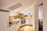 - Küche mit Elektroherd, Backofen, Kühlschrank und Gefrierfach, Geschirrspüler, Kaffeemaschine, Wasserkocher, Sandwichtoaster plus zusätzlicher Abstellraum