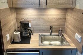 Mikrowelle, Kaffeemaschine, Wasserkocher, Geschirr, Besteck und vielen