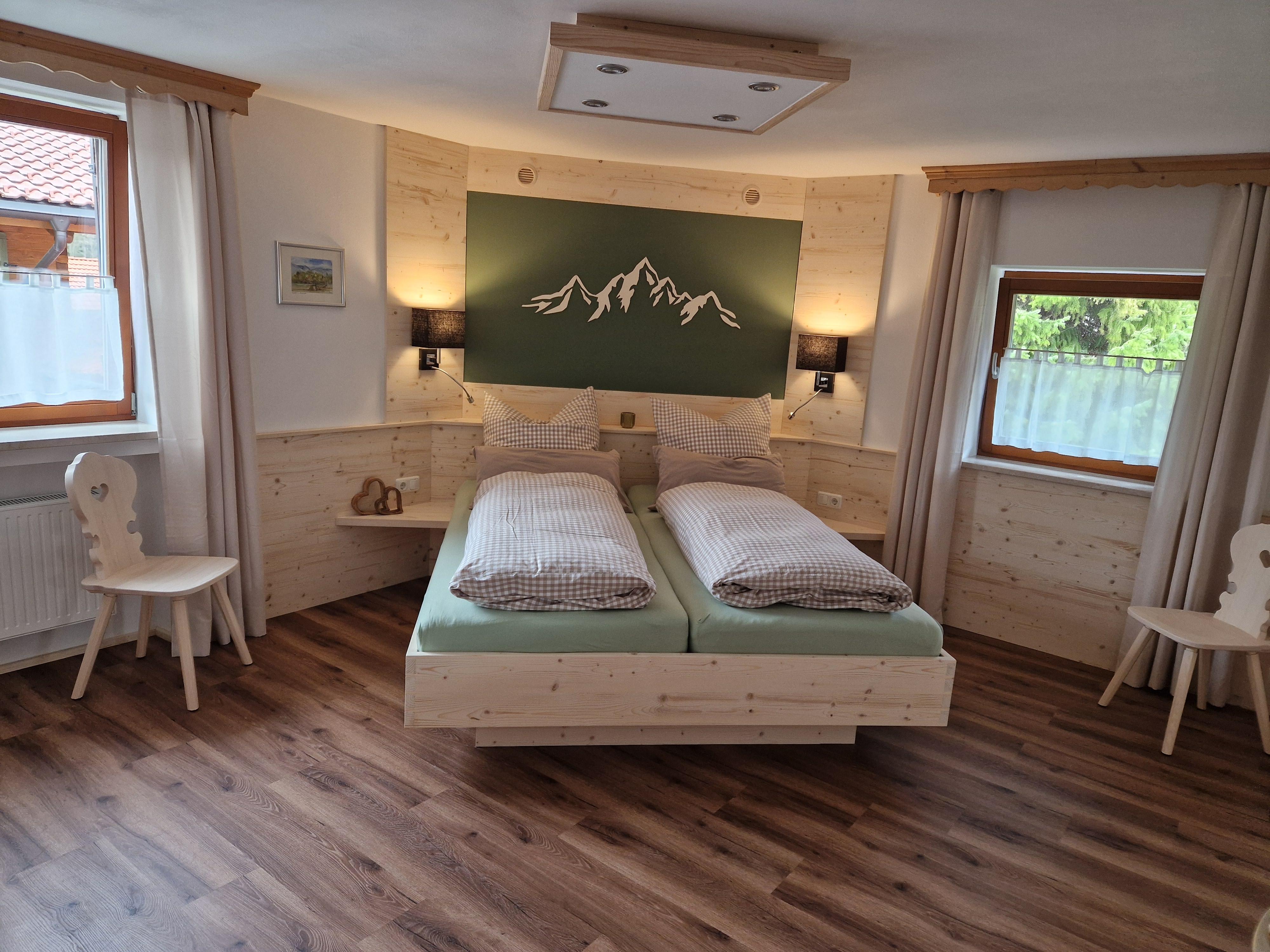 Herzlich Willkommen in unserer gemütlich und komplett eingerichteten Ferienwohnung (75 m²) in ruhiger, sonniger Lage mit Bergblick. Sie bietet ausreichend Platz für 2 - 4 Personen und ist u. a. ausgestattet mit einer Wohnküche (inkl. Mikrowelle) mit Eckbank, Dusche/WC, Wohnzimmer, Terrasse, Kabel-TV, Radio, 2 Schlafzimmer im Obergeschoss .Bettwäsche ist vorhanden. Ein eigener Eingang und ein Pkw-Stellplatz am Haus sind selbstverständlich. Sie werden sich bei uns wohlfühlen.