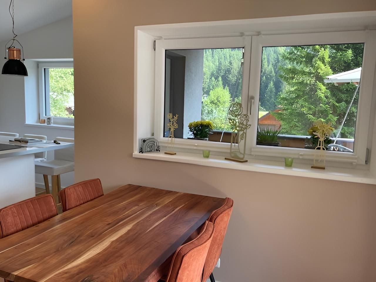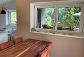 Wunderschön natürlich auch der Blick in den schönen Garten mit vielen Bäumen und Pflanzen.