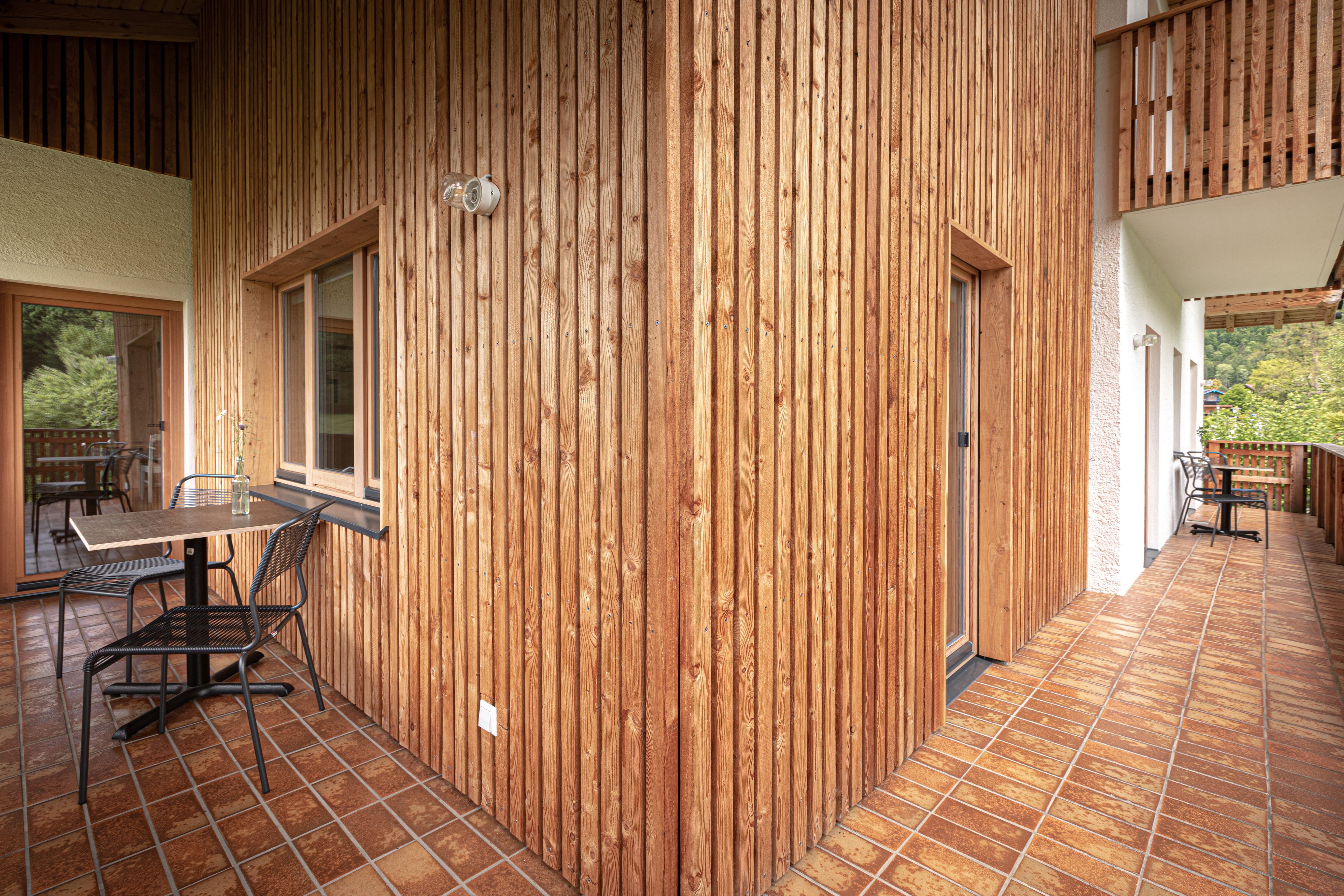 Nachhaltigkeit spielt eine zentrale Rolle: Die Wohnung wurde mit natürlichen Baustoffen saniert, beheizt wird sie mit einer Pelletheizung und Ökostrom. Die Außenanlage ist bienen- und insektenfreundlich gestaltet.