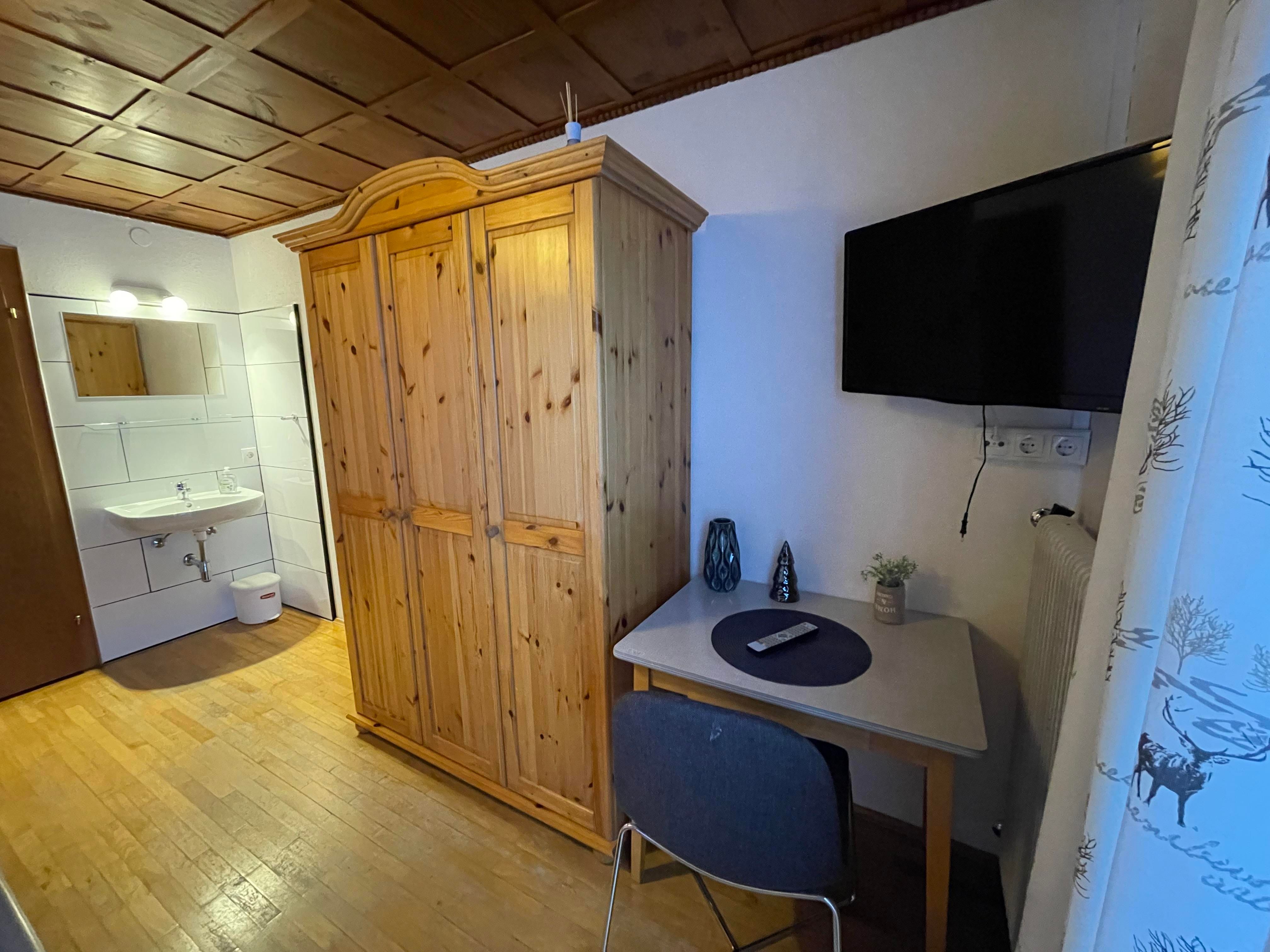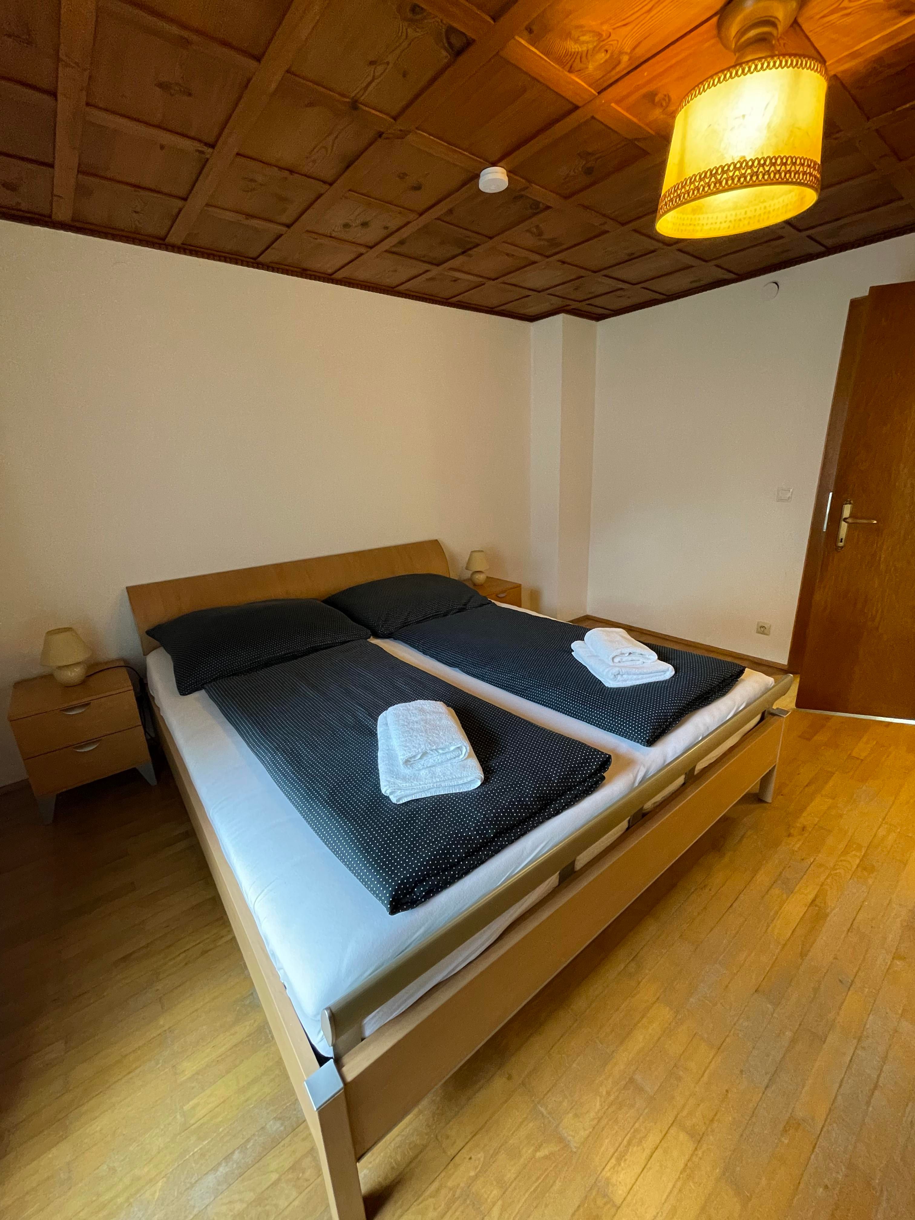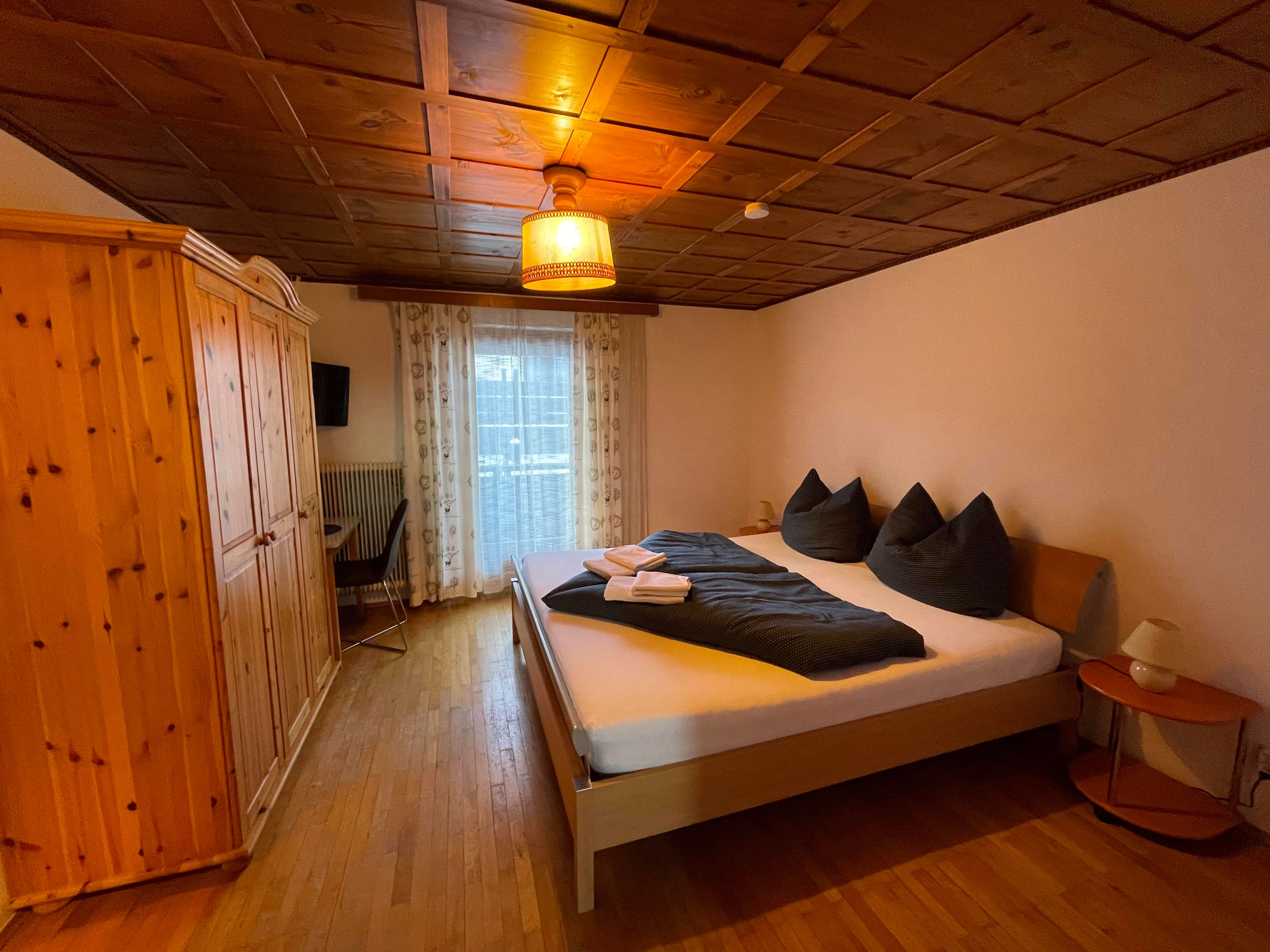 Genießen Sie Ihren Aufenthalt im gemütlichen Doppelzimmer mit Gemeinschaftsbad! Im Zimmer haben Sie ein Kingsize-Bett, einen großen Kleiderschrank, einen Fernseher und einen Tisch mit Stühlen. Eines der von uns angebotenen Doppelzimmer hat Zugang zum Balkon. In dem Zimmer haben Sie Waschbecken, Dusche und Toilette auf dem Flur und werden nur mit einem anderen Zimmer geteilt. Bettwäsche und Handtücher stellen wir kostenlos zur Verfügung. Sie haben auch Zugang zu einer großen, voll ausgestatteten Gemeinschaftsküche. Sie können gerne den Kühlschrank und andere Geräte benutzen, um Ihre Mahlzeiten zuzubereiten. Wir haben eine Kaffeemaschine für Filterkaffee und Nespresso, die Ihnen zur Verfügung stehen. Wir haben Platz für Ihre Skier sowie einen Skischuhtrockner. In Ihrem Zimmer und im ganzen Haus haben Sie Highspeed-WLAN.