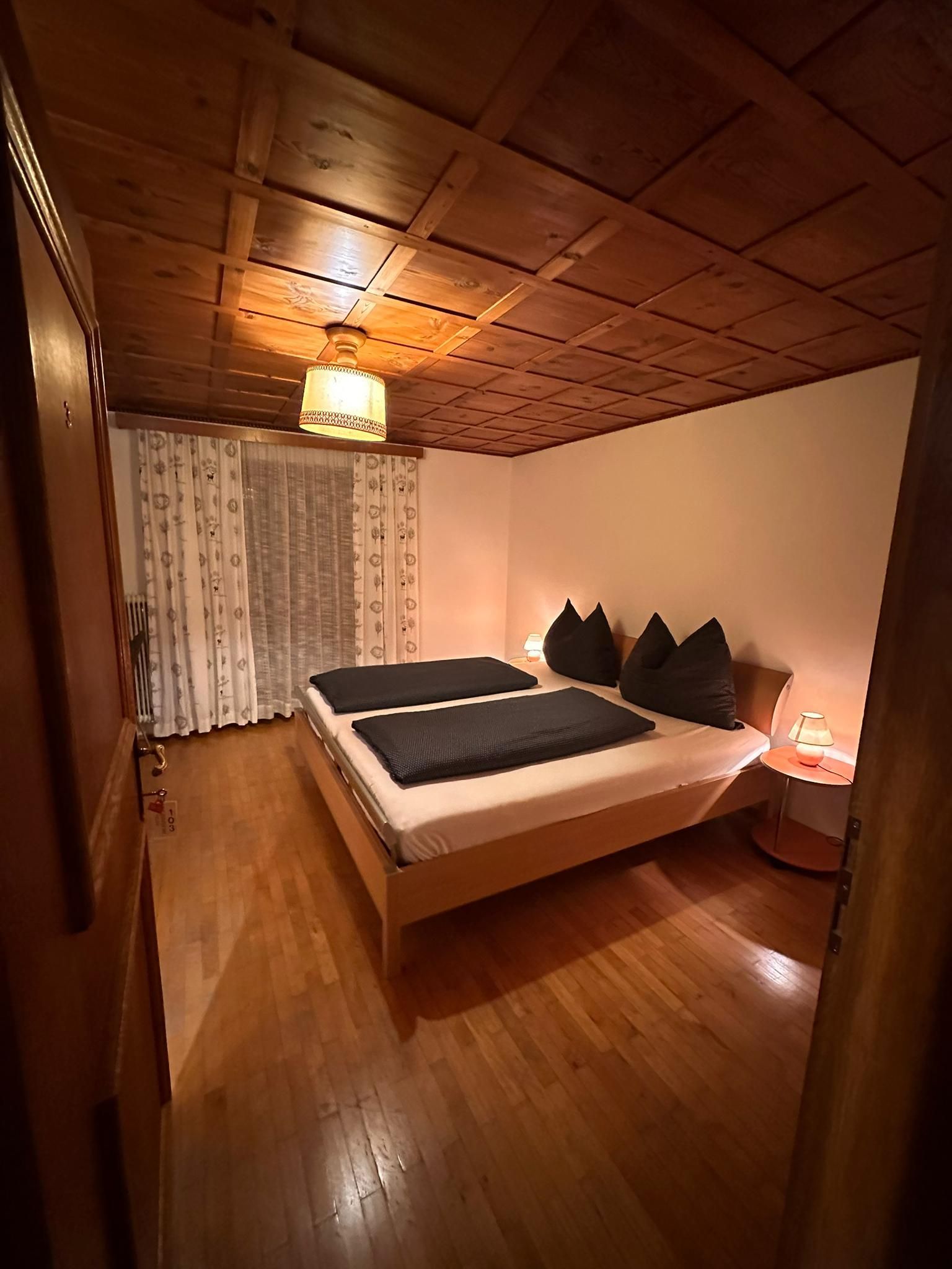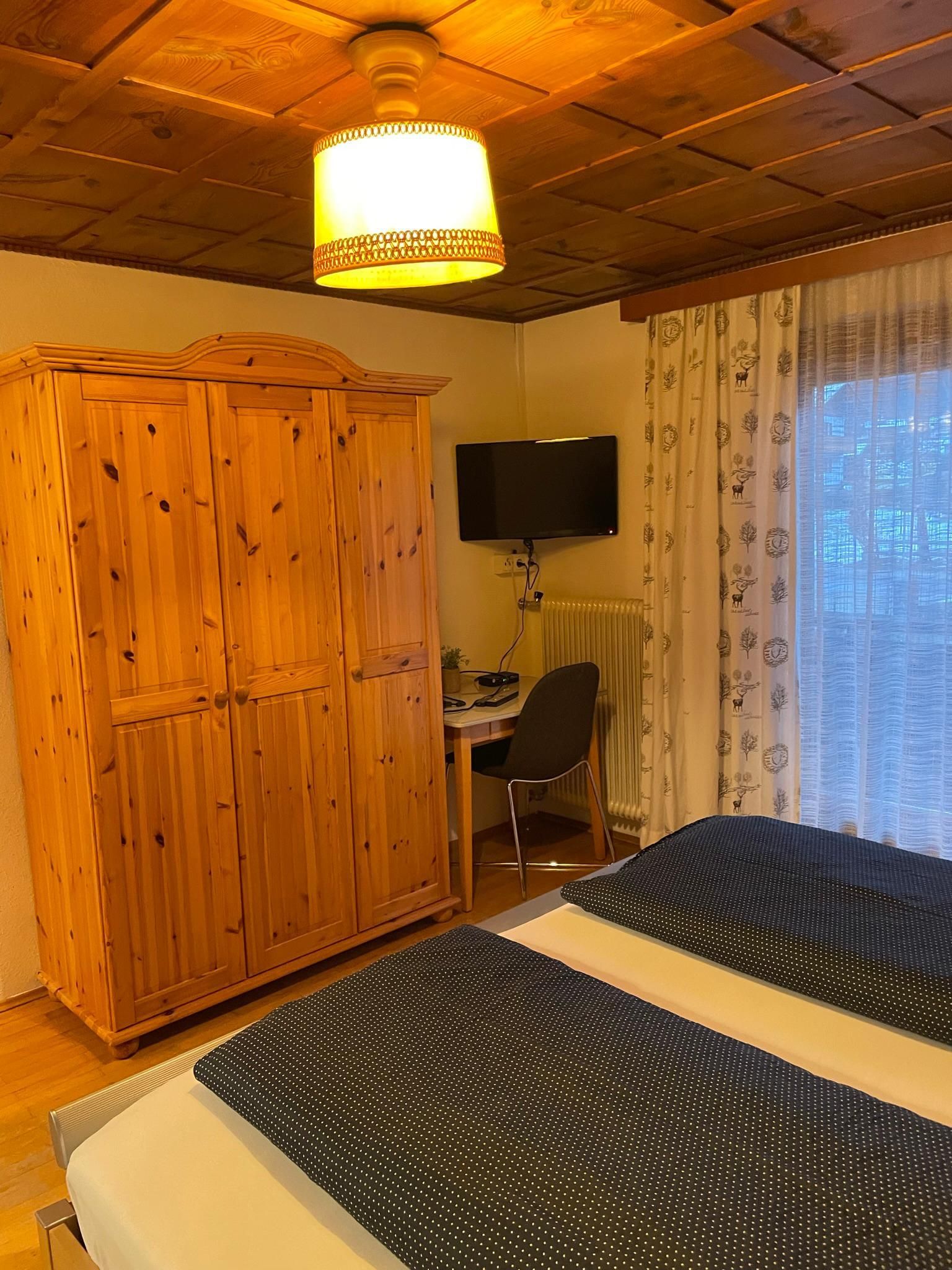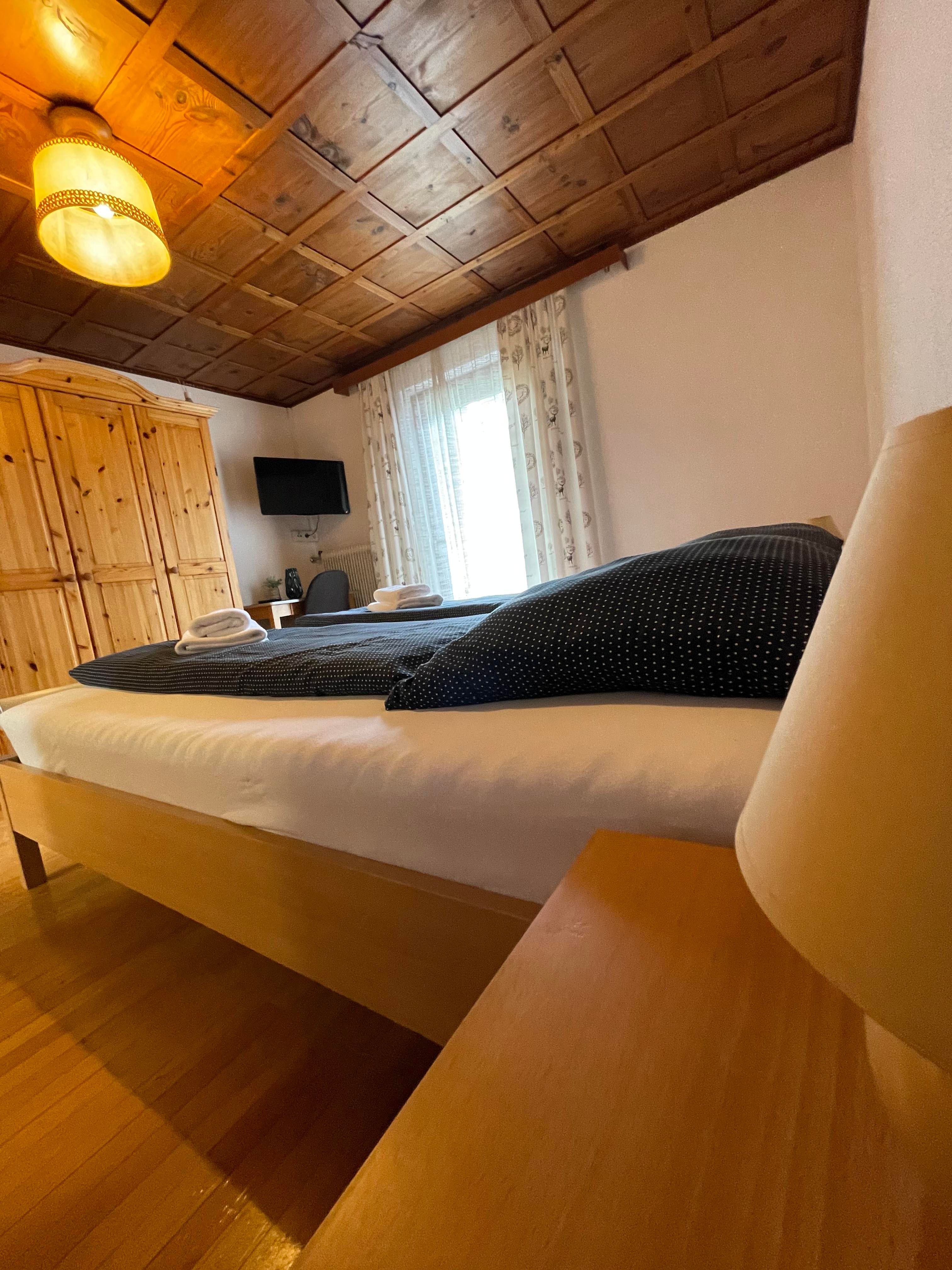 Genießen Sie Ihren Aufenthalt im gemütlichen Doppelzimmer mit Gemeinschaftsbad! Im Zimmer haben Sie ein Kingsize-Bett, einen großen Kleiderschrank, einen Fernseher und einen Tisch mit Stühlen. Eines der von uns angebotenen Doppelzimmer hat Zugang zum Balkon. In dem Zimmer haben Sie Waschbecken, Dusche und Toilette auf dem Flur und werden nur mit einem anderen Zimmer geteilt. Bettwäsche und Handtücher stellen wir kostenlos zur Verfügung. Sie haben auch Zugang zu einer großen, voll ausgestatteten Gemeinschaftsküche. Sie können gerne den Kühlschrank und andere Geräte benutzen, um Ihre Mahlzeiten zuzubereiten. Wir haben eine Kaffeemaschine für Filterkaffee und Nespresso, die Ihnen zur Verfügung stehen. Wir haben Platz für Ihre Skier sowie einen Skischuhtrockner. In Ihrem Zimmer und im ganzen Haus haben Sie Highspeed-WLAN.