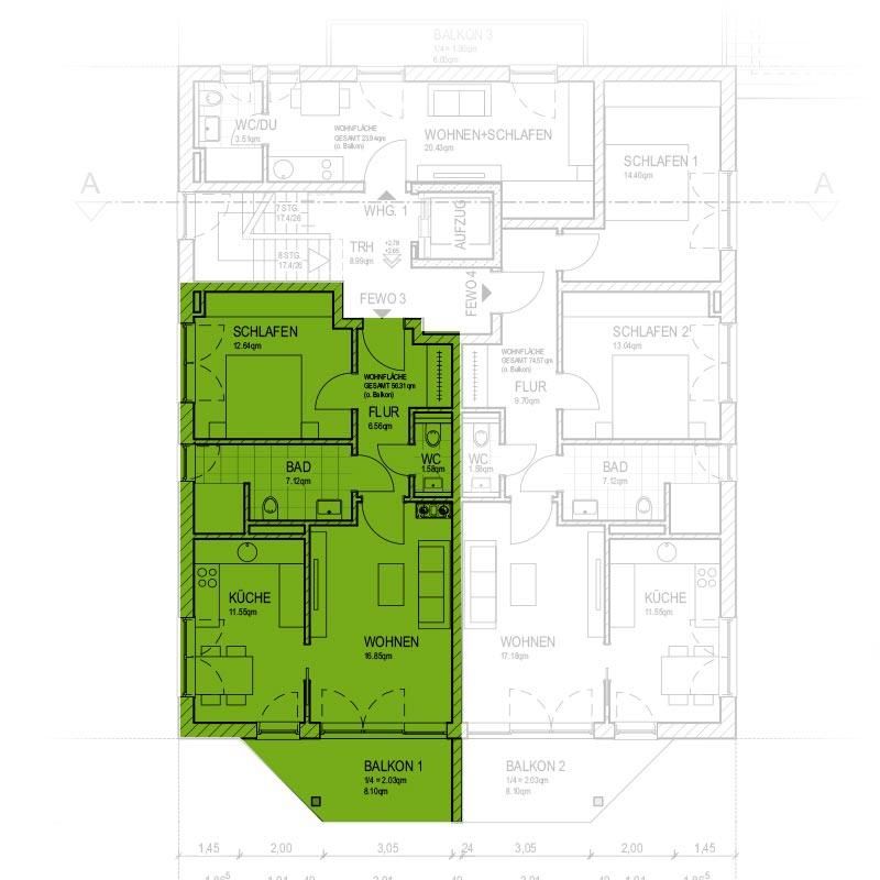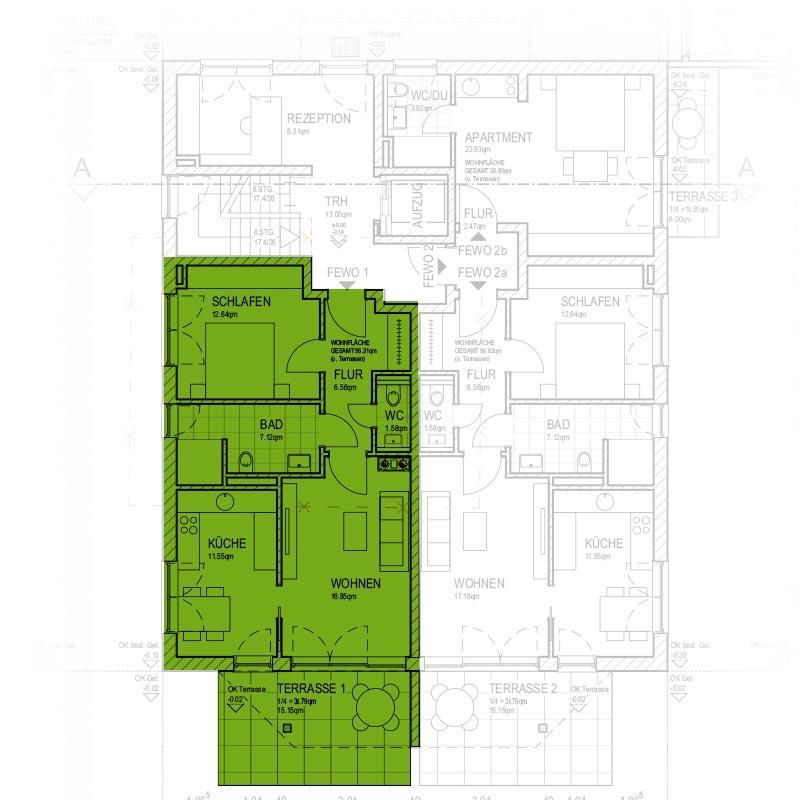 Die Wohnungen bieten jeweils ein Schlafzimmer, eine voll ausgestattete Küche, ein Wohnzimmer, eine Garderobe im Eingangsbereich der Wohnung sowie wahlweise Balkon oder Terrasse. Das großzügige Bad ist nach barrierefreien Standards ausgestattet.