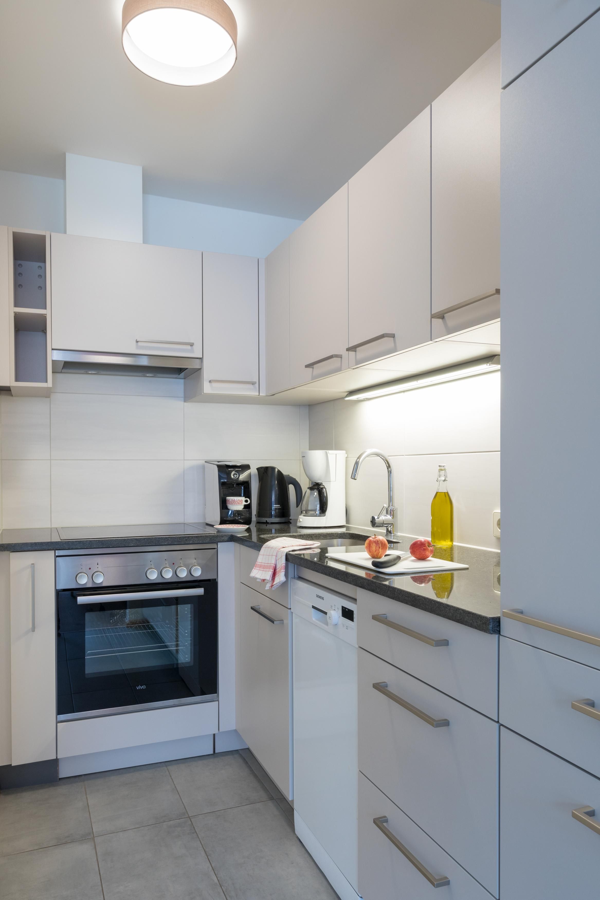 Alle unsere Apartments bieten eine voll ausgestattete Küche.