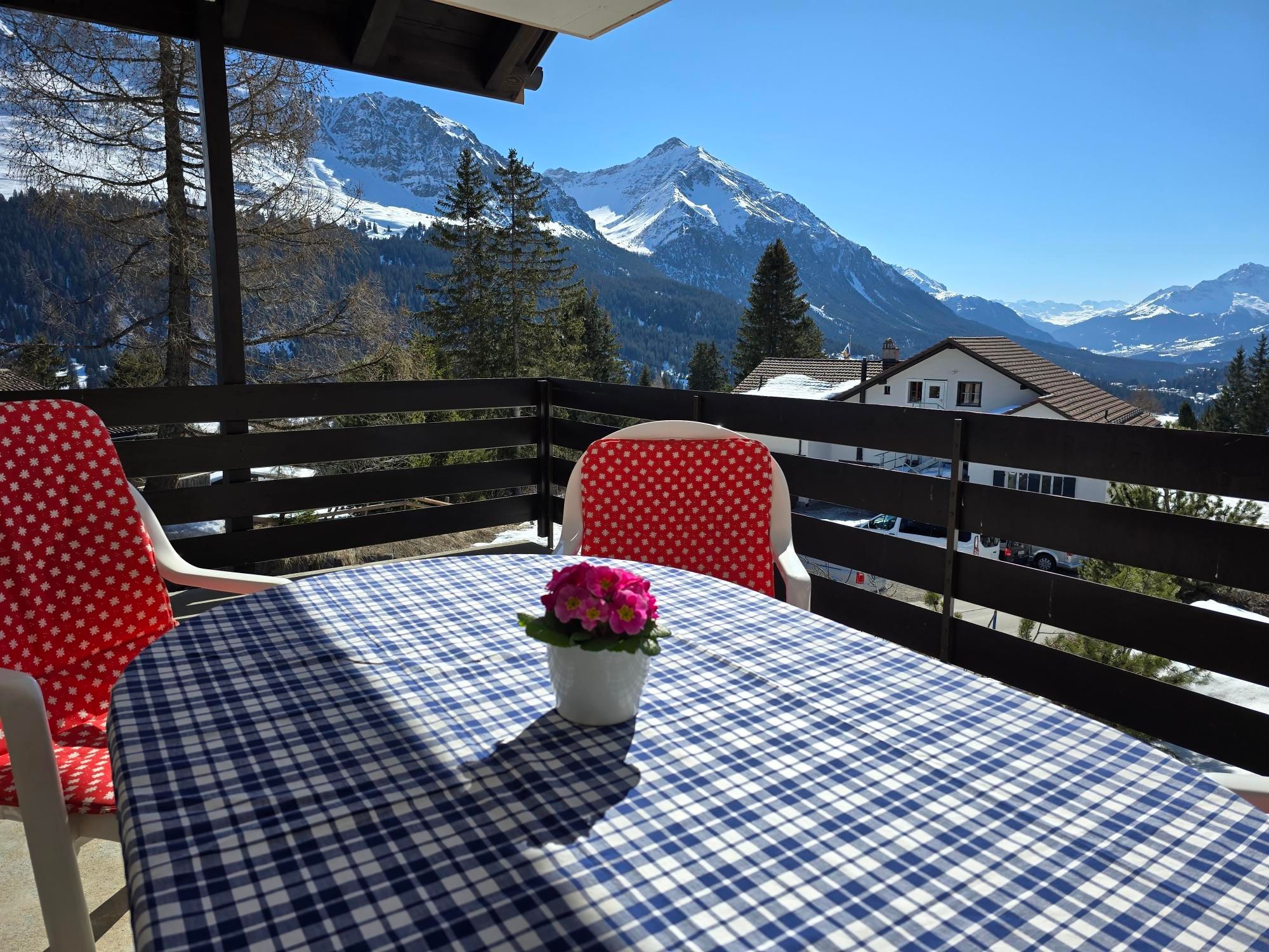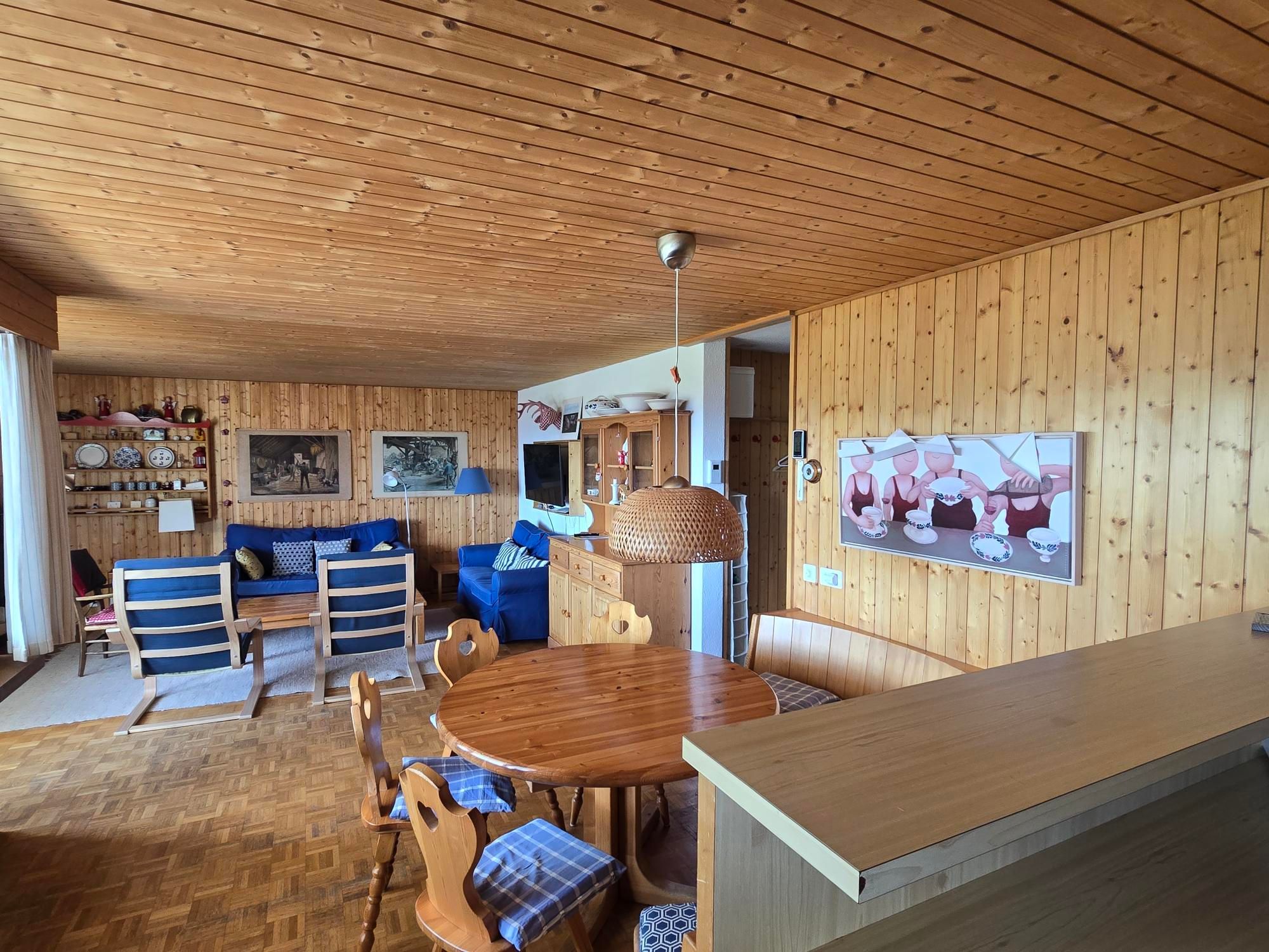Gemütliche 4.5-Zimmerwohnung mit herrlichem Blick auf die Bergwelt. Idealer Ausgangspunkt für Wanderungen und Biketouren im Sommer. Mit sonniger Terrasse, Garage und Aussenparkplatz.