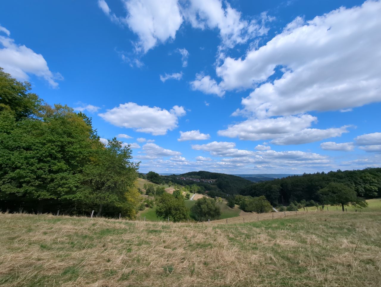 Das Haus bietet nach wenigen Hügeln einen atemberaubenden Blick über das Maintal, wo man in der Ferne die Skyline von Frankfurt erkennen kann.