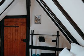 Dieses liebevoll eingerichtete Fachwerkhaus erstreckt sich über Erdgeschoss, Obergeschoss und Dachgeschoss und bietet auf ca. 70 m² Platz für bis zu 4 Personen. Im Dachgeschoss befindet sich ein gemütliches Schlafzimmer mit Doppelbett. Der Wohn-/Schlafraum im Obergeschoss verfügt über eine komfortable Schlafcouch und lädt zum Verweilen ein. Im Erdgeschoss finden Sie eine voll ausgestattete Küchenzeile mit angrenzendem Essbereich sowie ein Badezimmer mit Dusche und WC. Ein ideales Urlaubsdomizil für Paare, Familien oder kleine Reisegruppen – stilvoll, gemütlich und gut ausgestattet.