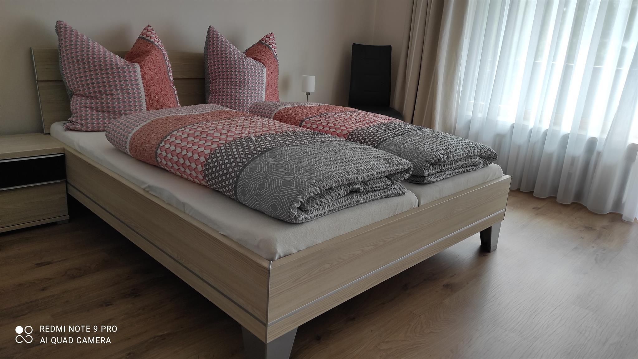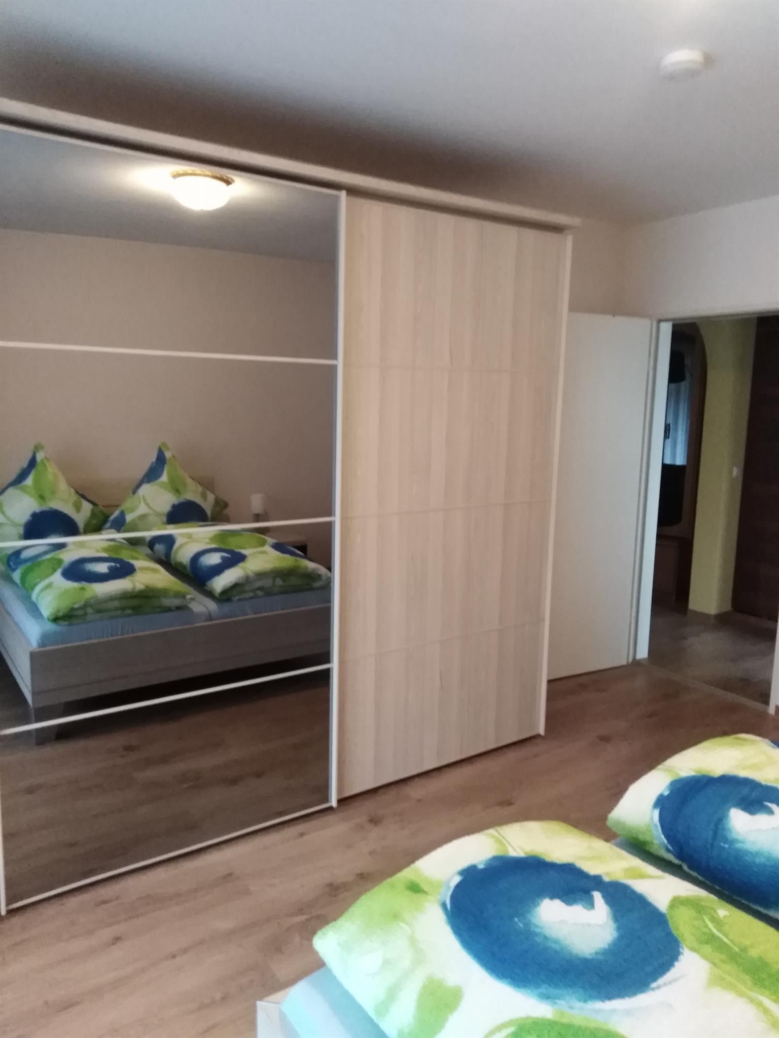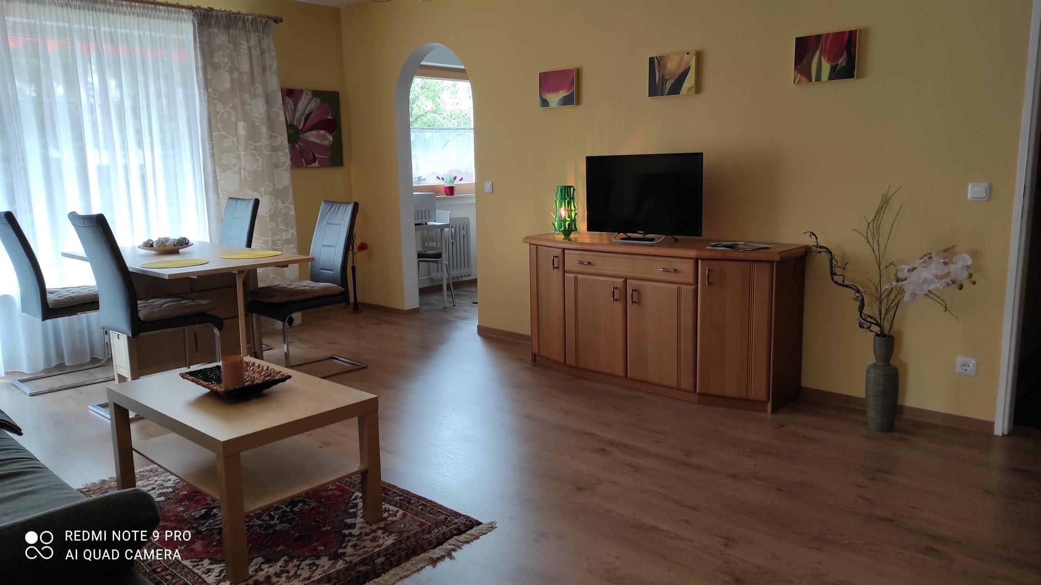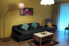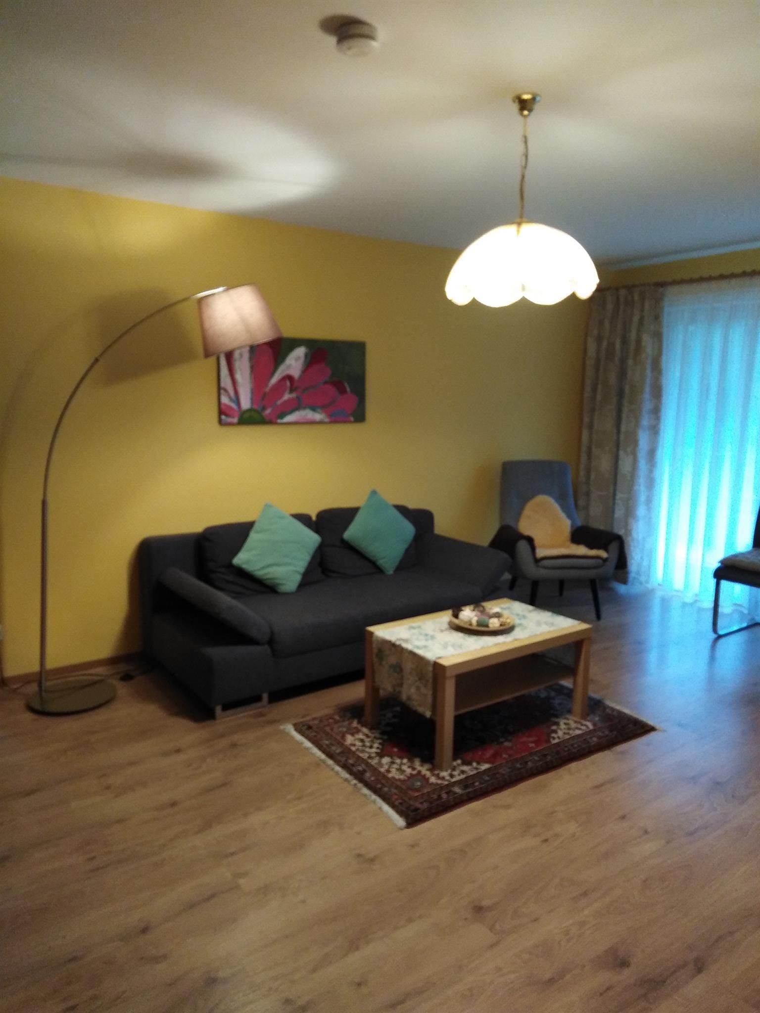 Die Ferienwohnung bietet nicht nur viel Raum auf Wohnfläche ca. 71qm, sondern punktet auch mit einer liebevoll eingerichteten Ausstattung. Sie hat Platz für 2 Gäste und verfügt über eine Küche, ein Schlafzimmer, ein Badezimmer sowie ein Wohnzimmer. Das Schlafzimmer hat ein Doppelbett, die Matratzen sind getrennt, die Fußenden des Bettes sind offen. Des Weiteren ist im Schlafzimmer ein Schrank und ein Schreibtisch. Über das Fenster haben Sie Zugang zum Südbalkon. Den Balkon erreichen Sie auch über das Wohnzimmer. Das Wohnzimmer ist ausgestattet mit einer Couch, einem Fernseher sowie einem Esstisch sowie einem Wohnzimmerschrank. Die Küche ist voll ausgestattet und verfügt über einen 4-Platten Herd mit Backofen, Geschirrspüler, Mikrowelle, Kühlschrank mit Gefrierfach. Außerdem gibt es in der Küche einen Wasserkocher, Kaffeekocher, Toaster. Das neu renovierte Badezimmer verfügt über eine Badewanne mit integrierter Dusche, Waschbecken, WC und Fußbodenheizung. Auch ein Fenster ist im Badezimmer. Wlan ist in der Wohnung nicht verfügbar. Ein Autostellplatz vor der Wohnung steht kostenfrei zur Verfügung.