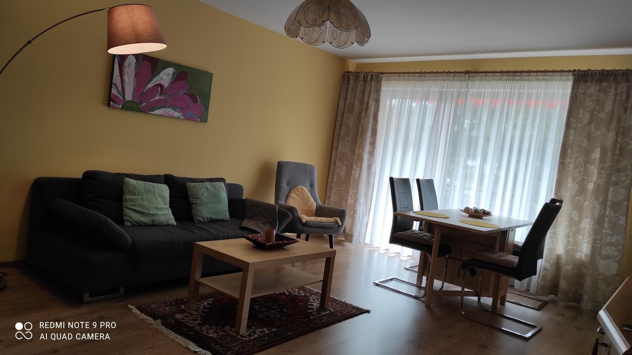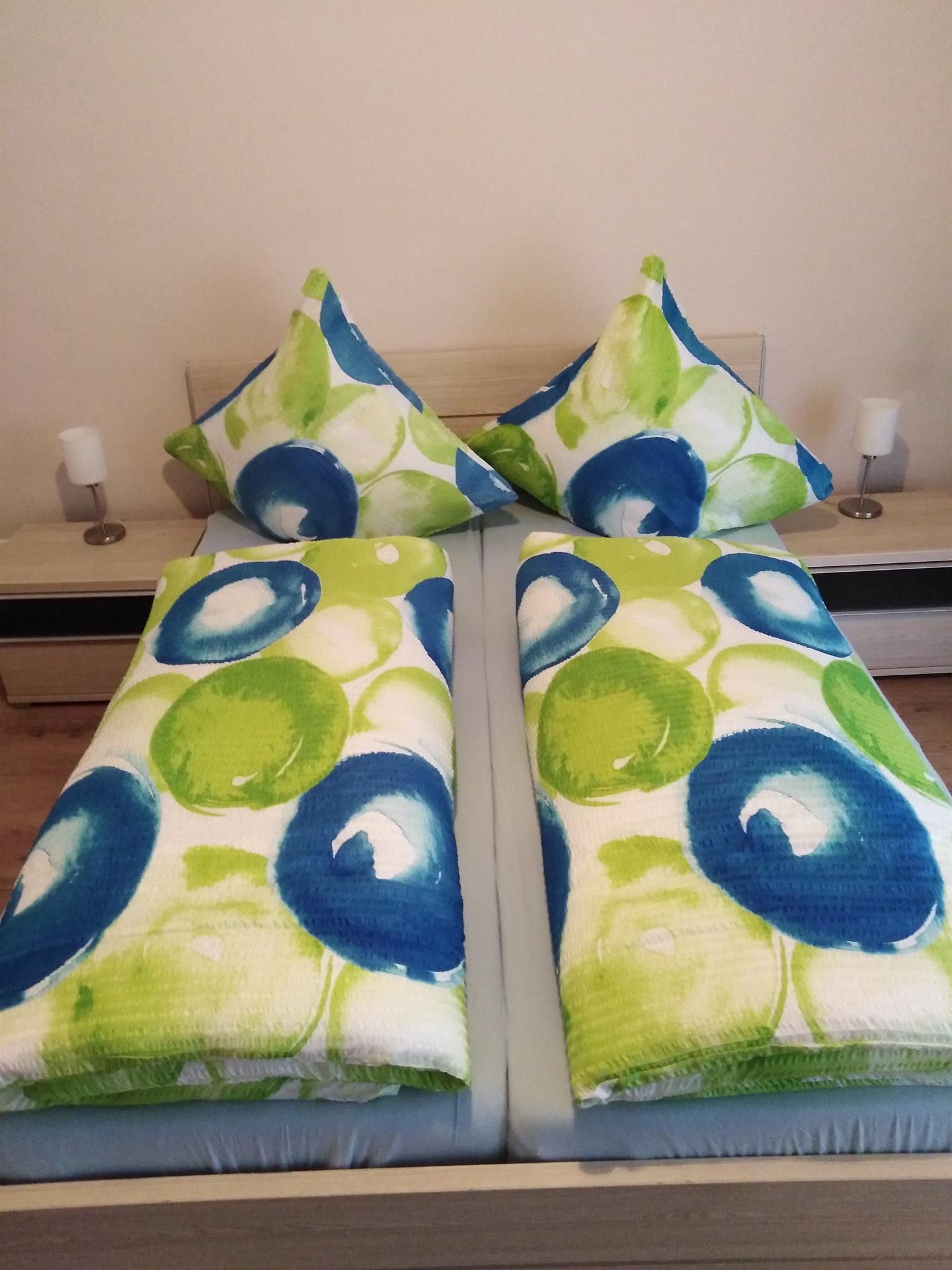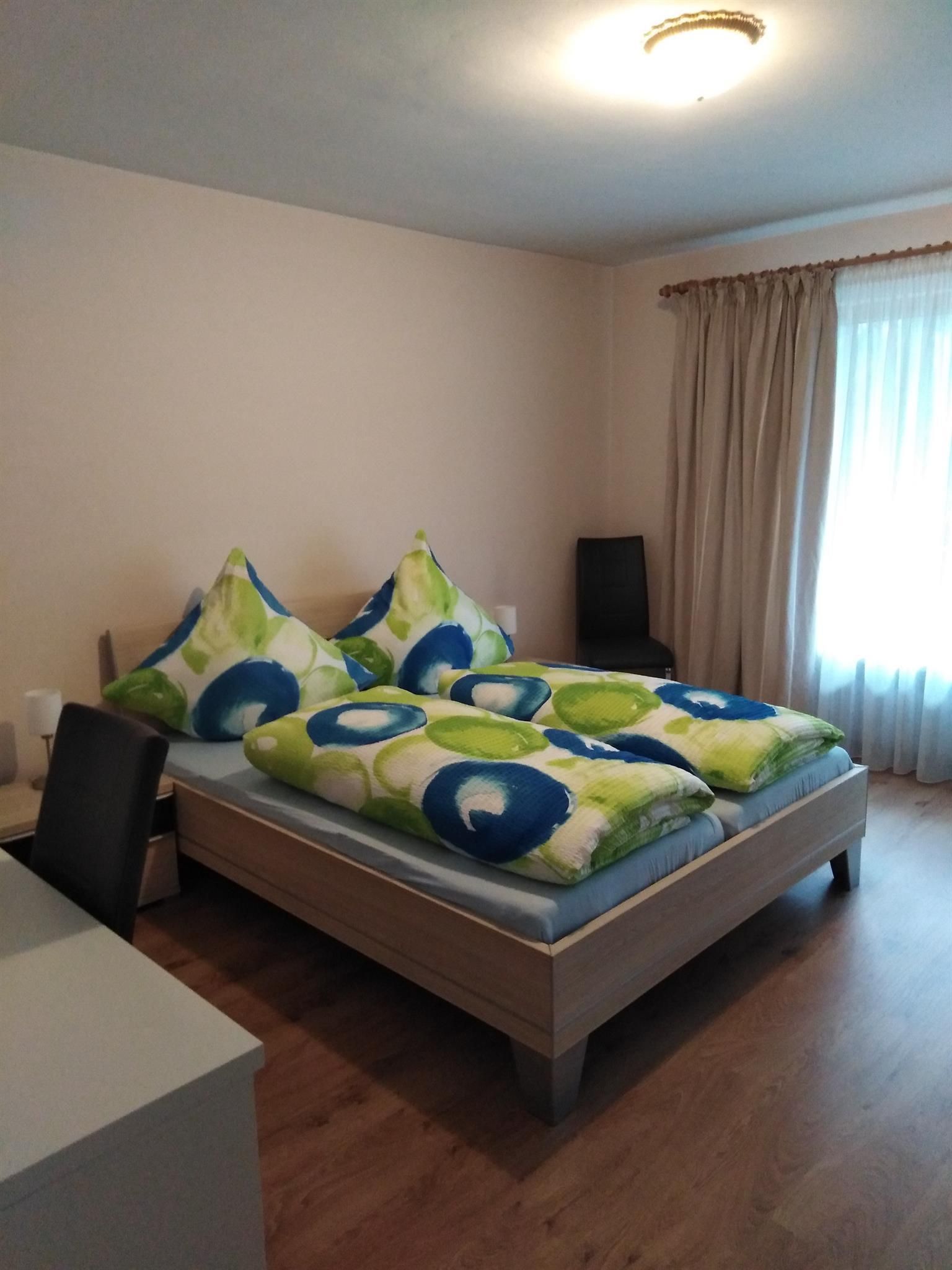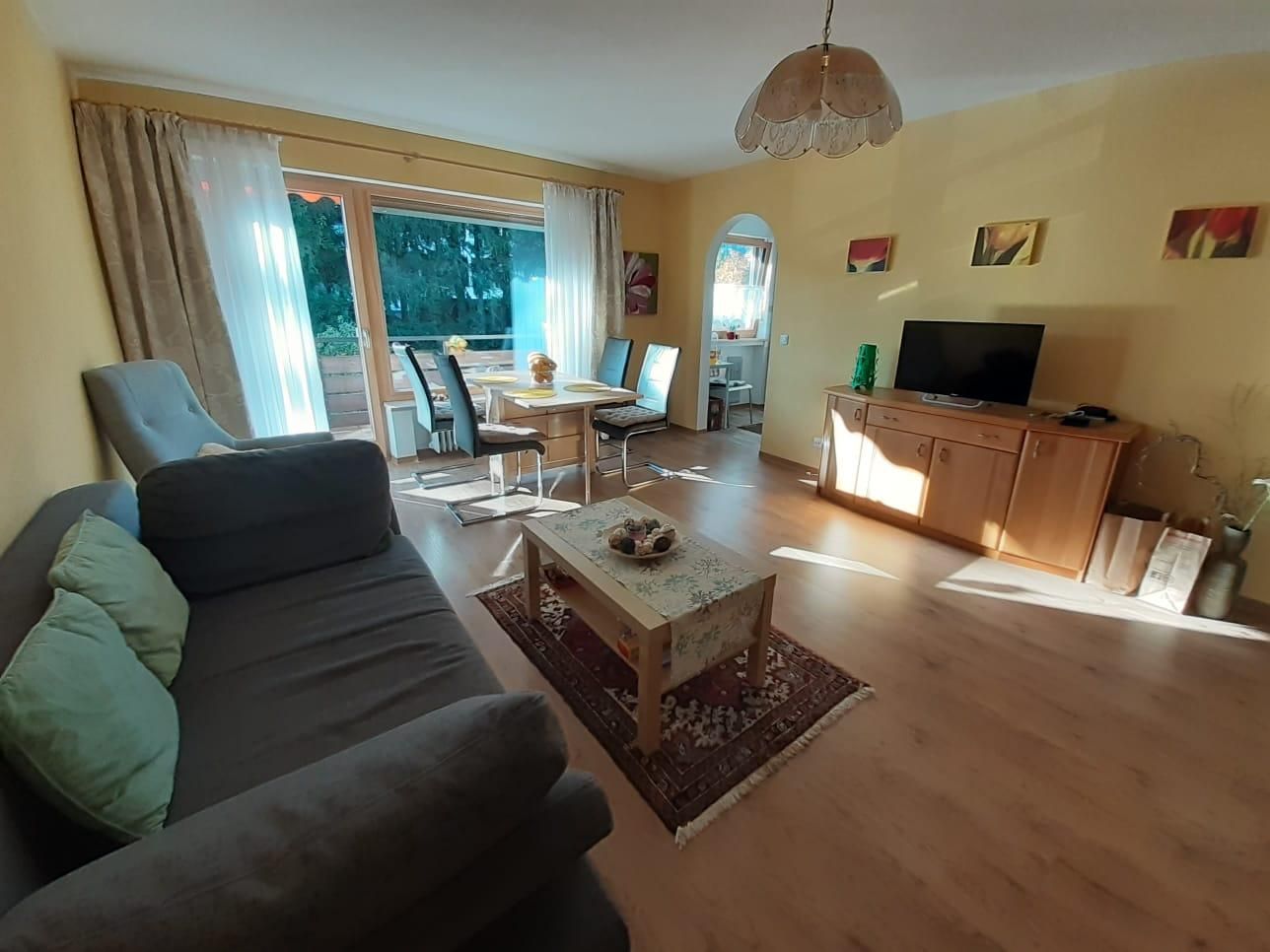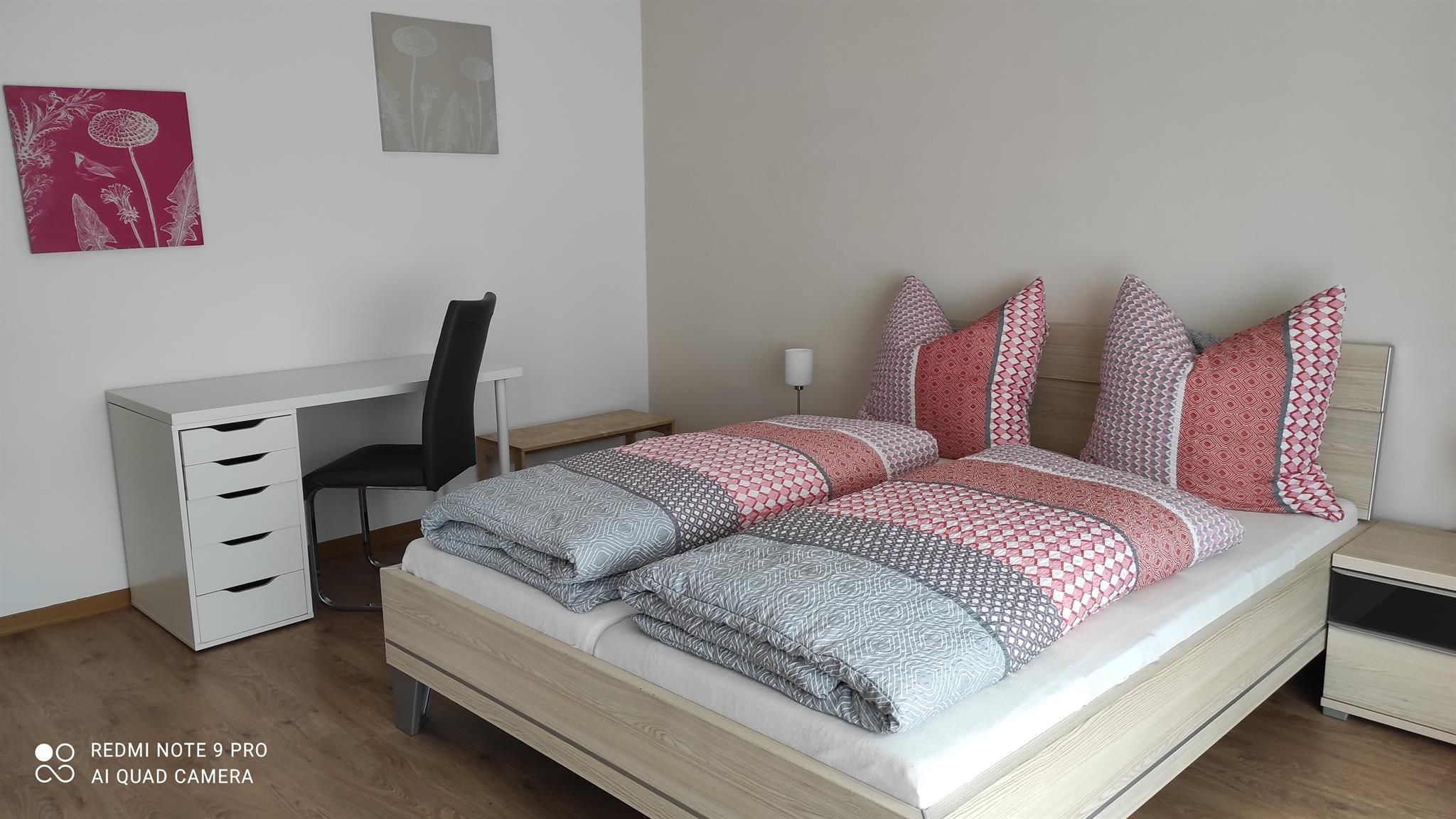 Die Ferienwohnung bietet nicht nur viel Raum auf Wohnfläche ca. 71qm, sondern punktet auch mit einer liebevoll eingerichteten Ausstattung. Sie hat Platz für 2 Gäste und verfügt über eine Küche, ein Schlafzimmer, ein Badezimmer sowie ein Wohnzimmer. Das Schlafzimmer hat ein Doppelbett, die Matratzen sind getrennt, die Fußenden des Bettes sind offen. Des Weiteren ist im Schlafzimmer ein Schrank und ein Schreibtisch. Über das Fenster haben Sie Zugang zum Südbalkon. Den Balkon erreichen Sie auch über das Wohnzimmer. Das Wohnzimmer ist ausgestattet mit einer Couch, einem Fernseher sowie einem Esstisch sowie einem Wohnzimmerschrank. Die Küche ist voll ausgestattet und verfügt über einen 4-Platten Herd mit Backofen, Geschirrspüler, Mikrowelle, Kühlschrank mit Gefrierfach. Außerdem gibt es in der Küche einen Wasserkocher, Kaffeekocher, Toaster. Das neu renovierte Badezimmer verfügt über eine Badewanne mit integrierter Dusche, Waschbecken, WC und Fußbodenheizung. Auch ein Fenster ist im Badezimmer. Wlan ist in der Wohnung nicht verfügbar. Ein Autostellplatz vor der Wohnung steht kostenfrei zur Verfügung.