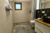 Dieses Dreibettzimmer ist nach Norden ausgerichtet und bietet euch dank des großen Fensters genügend Tageslicht. Das eingebaute Doppelbett (160 cm) ist harmonisch in eine Wandnische eingelassen und schafft so eine ganz besondere Schlafatmosphäre mit viel Gemütlichkeit und Rückzugscharakter. Das Einzelbett ist von einer Bettseite aus mit dem Rollstuhl nutzbar (120 cm Wendekreis). Das eigene Badezimmer ist modern gefliest und verfügt über eine schwellenfreie Dusche, Steinhandwaschbecken (nicht unterfahrbar), WC, Fußbodenheizung und großzügigen Spiegel. Der großzügige und hochwertig ausgestattete Wohn- und Essbereich mit Küche und Balkon können mitgenutzt werden.