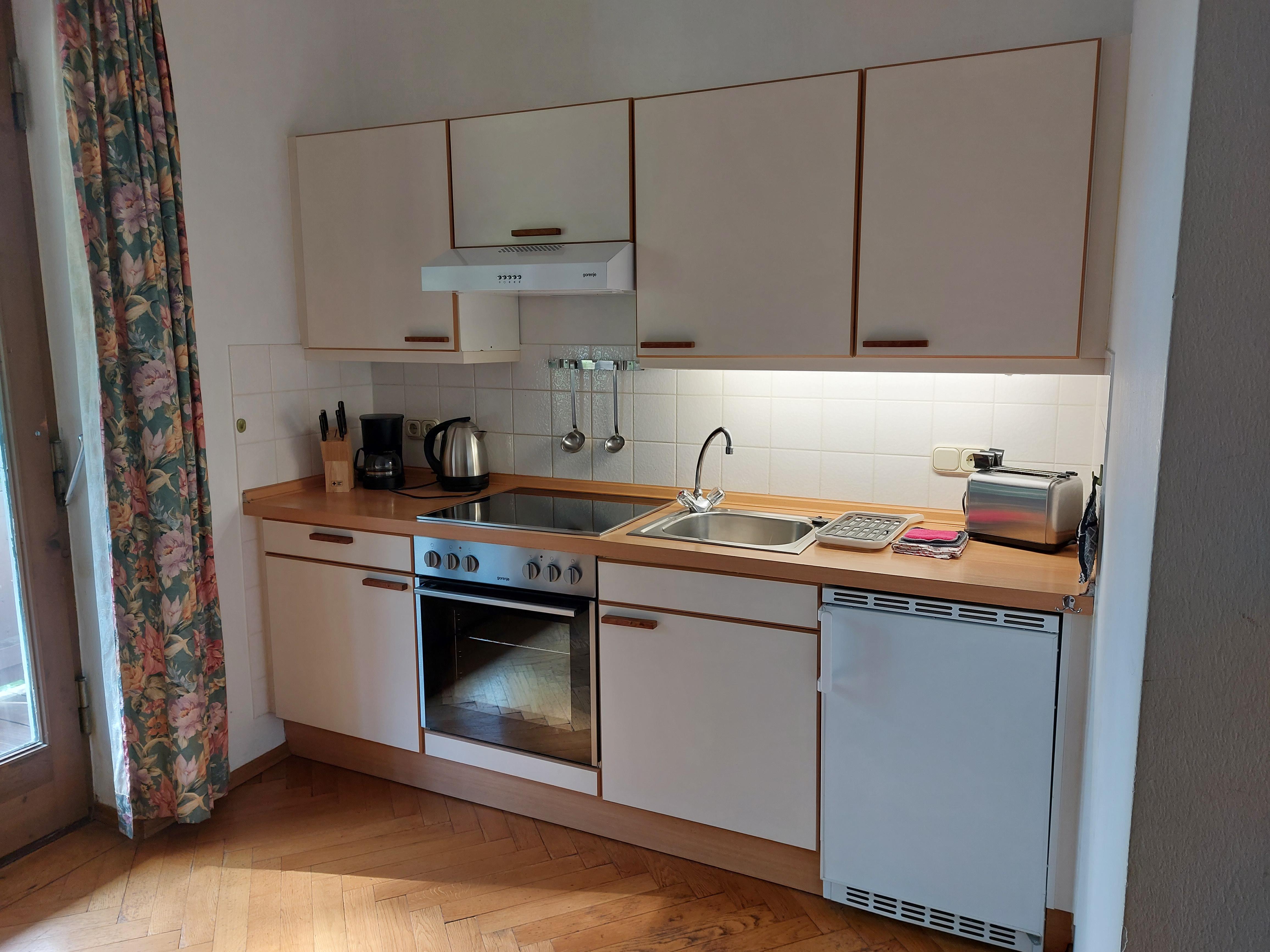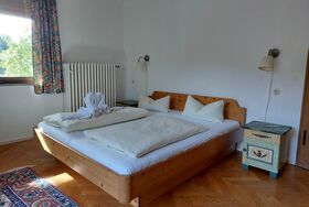 Die Ferienwohnung in einfachem Stil ist mit einer kleiner Küche und Balkon, einem Schlafzimmer mit drei Schlafmöglichkeiten und einem Badezimmer mit Dusche ausgestattet. Die Gäste können die Räumlichkeiten im Erdgeschoss (Gastraum und Weinstube) mit nutzen. Das W-LAN im gesamten Haus ist abschaltbar.