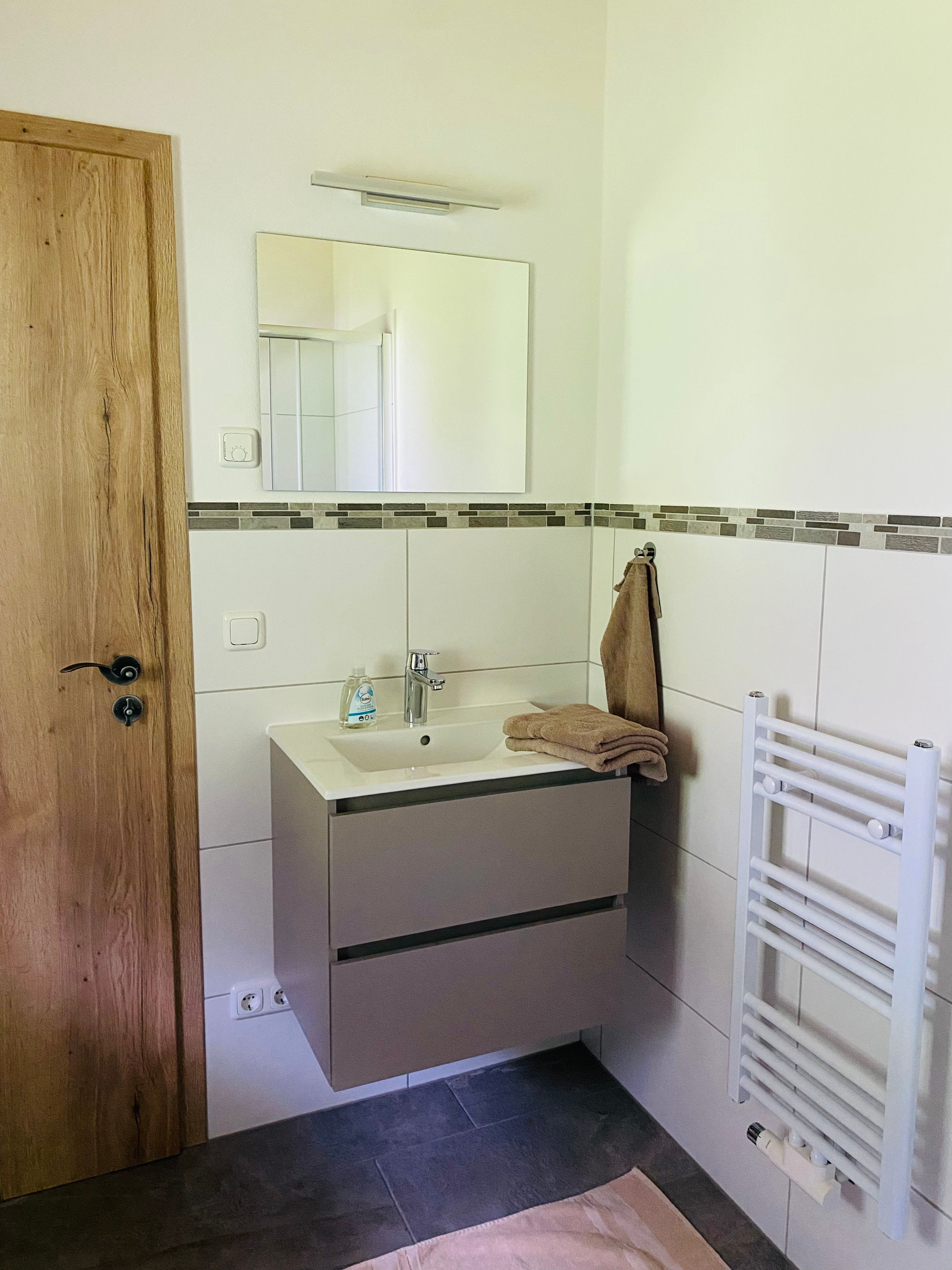 Unsere Ferienwohnung liegt im ersten OG unseres neu errichteten Anbau´s. Sie ist alleinstehend und über einen separaten Treppenaufgang zu erreichen.