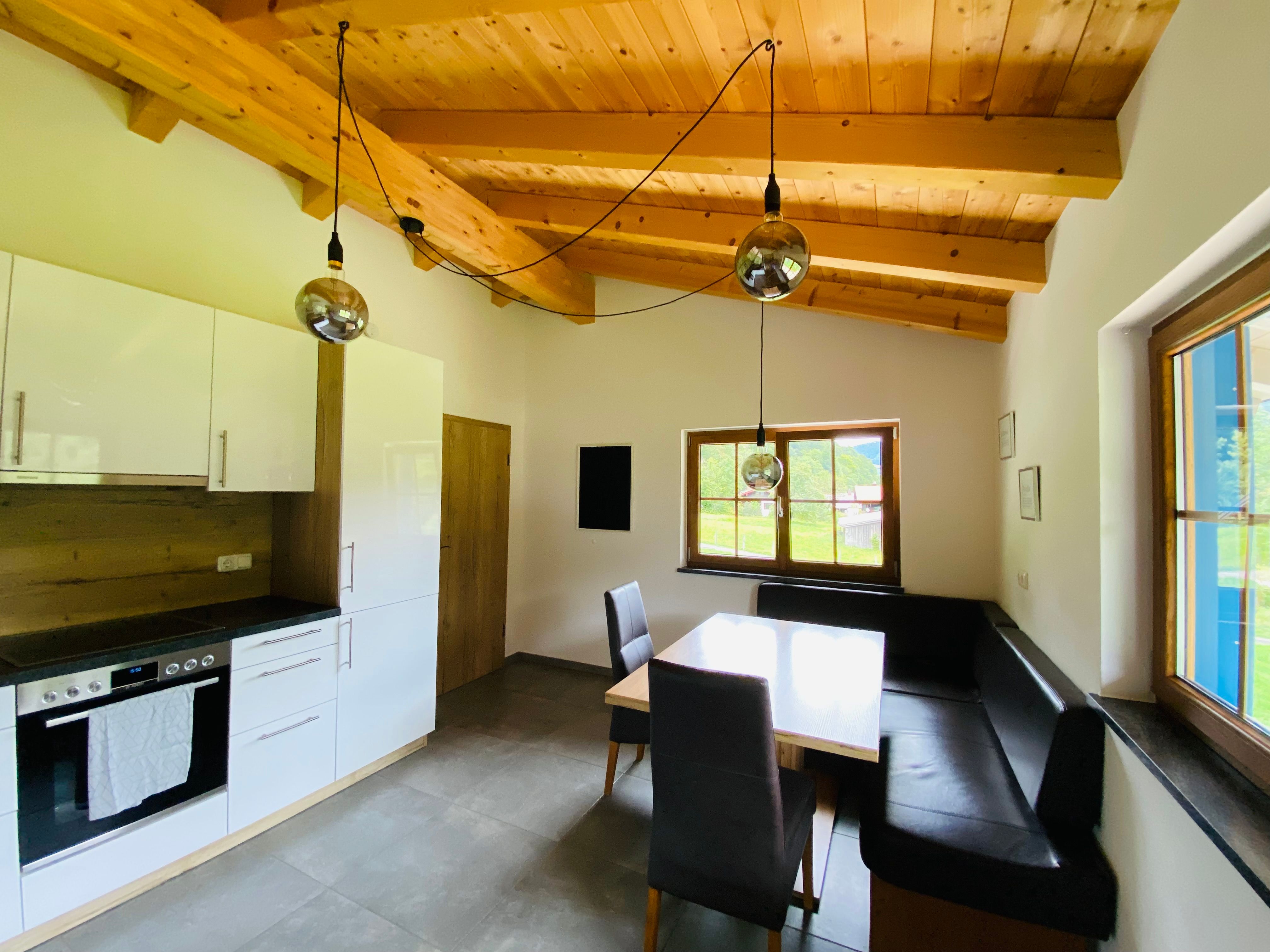 Wohnküche: Modern gestaltet mit kompletter Ausstattung – Induktionskochfeld, Kühlschrank, Gefrierschrank, Kaffeemaschine, ausreichend Geschirr sowie ein schöner Sitzbereich für gemütliche Mahlzeiten