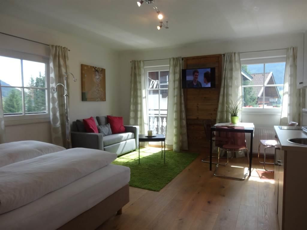 Appartement: Wohn-Schlafraum, Balkon, Kochnische, Sitzgruppe und Sofa, Dusche/Wc, Kabel Flat-TV; Telefon
