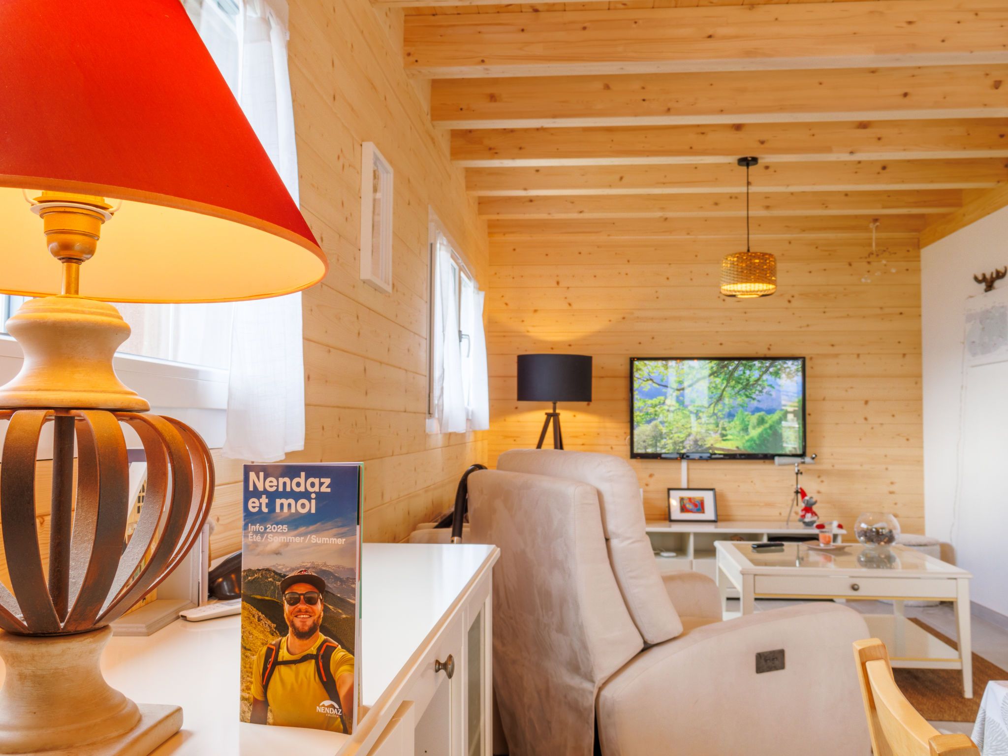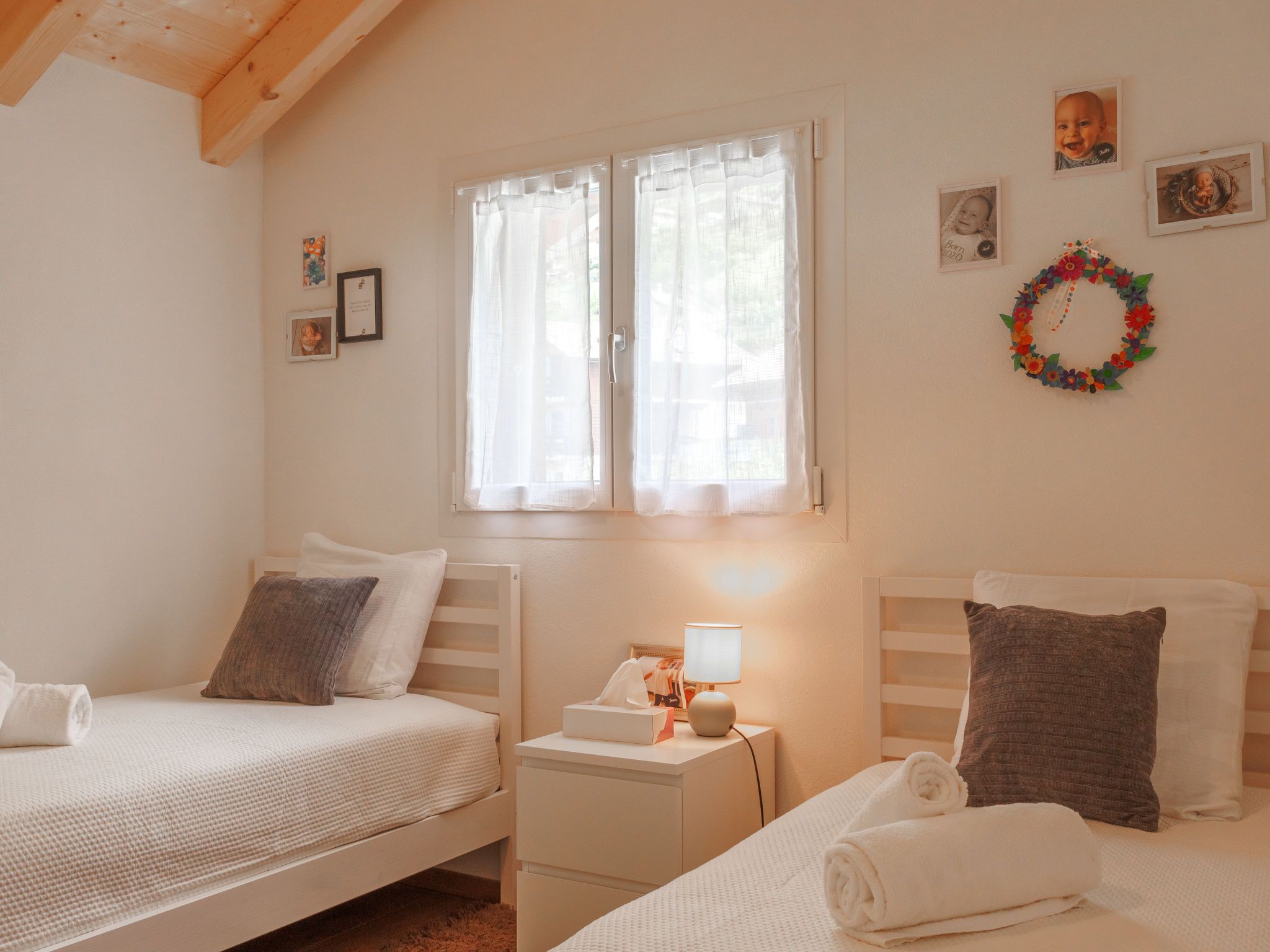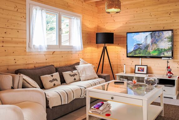 Oxygène, 4-Zimmer-Chalet 85 m2 auf 3 Stockwerken. Modern und geschmackvoll eingerichtet: Wohn-/Esszimmer mit Schwedenofen und Kabel-TV. Ausgang zur Terrasse. Offene Küche (Backofen, Geschirrspüler, 4 Induktionskochplatten, Toaster, Mikrowelle, elektrische Kaffeemaschine, Racletteofen, Fondue Set (Käse)). Dusche/WC. Unteres Geschoss: Eingang. Obergeschoss: 1 Zimmer mit 1 franz. Bett (180 cm, Länge 200 cm). 1 Zimmer mit 1 franz. Bett (160 cm, Länge 190 cm). 1 Kinderzimmer mit 2 Betten (90 cm, Länge 190 cm). Bad/WC. Terrasse, Nordlage und Ostlage. Terrassenmöbel, Gartengrill, Liegestühle (1). Sehr schöne Sicht auf das Tal. Zur Verfügung: Babybett. Internet (WLAN, gratis). Parkplatz (2 Autos). Bitte beachten: Nichtraucher-Haus. Maximal 1 Haustier/Hund erlaubt.