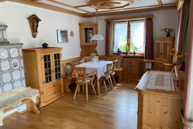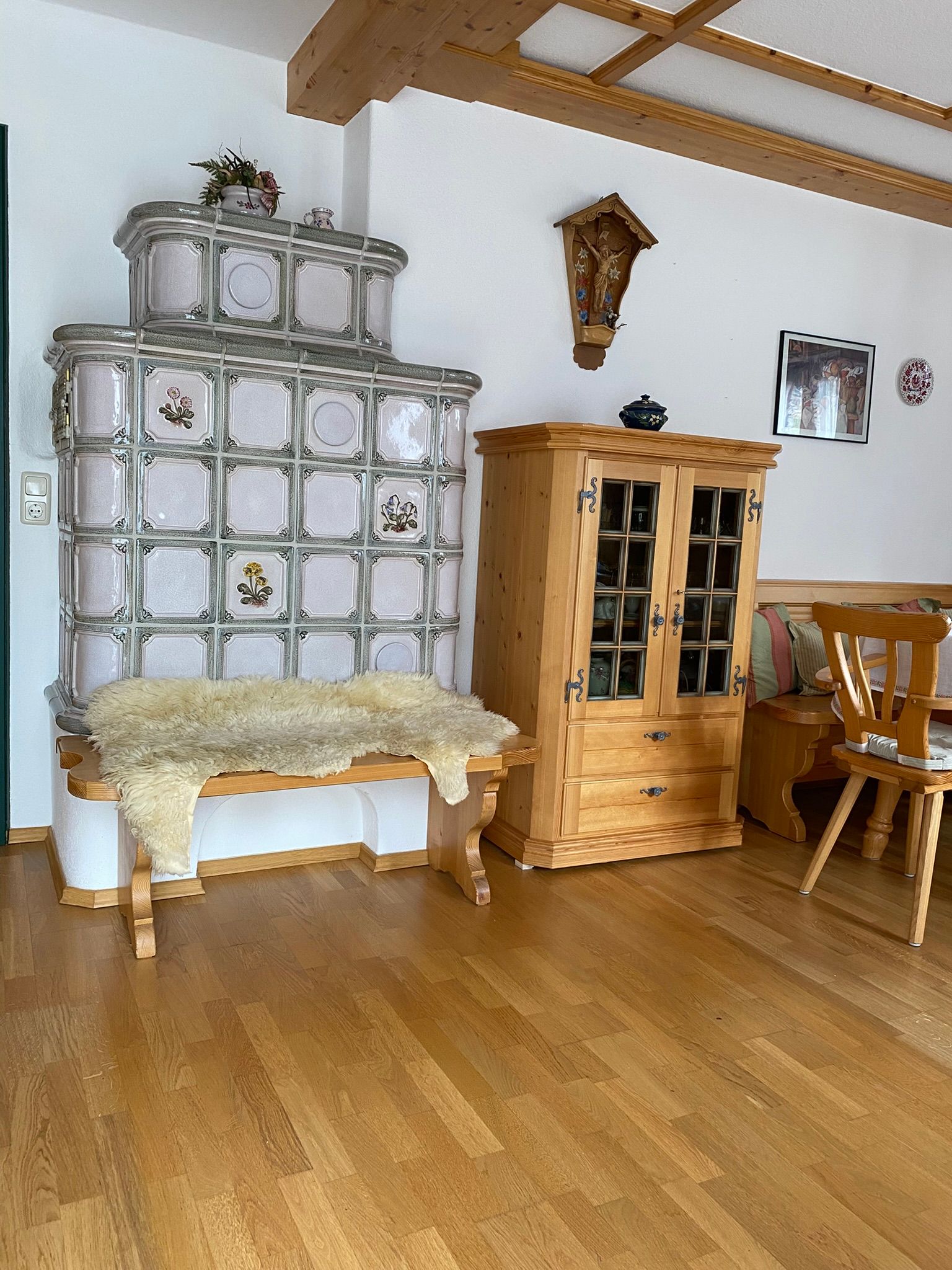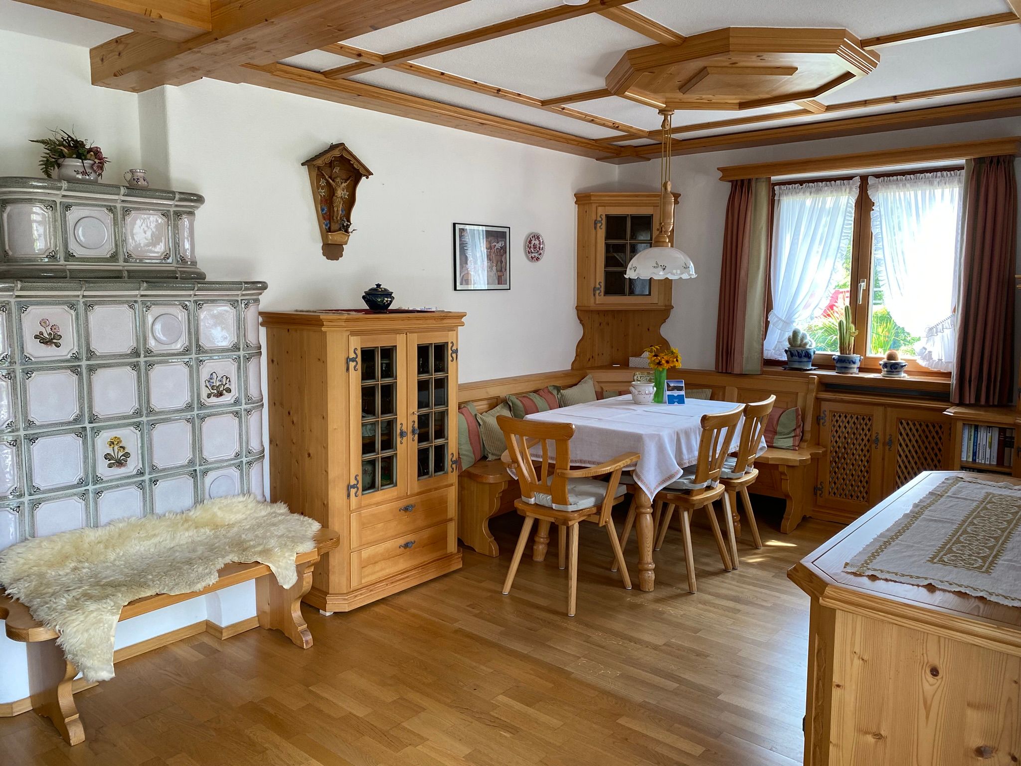 Eine hochwertige, traditionell bayerische Massivholzausstattung unseres Häuschens war für uns sehr wichtig, damit sich unsere Gäste wirklich zuhause fühlen können. Die besonders an Schlechtwettertagen sehr einladende, helle Bauern-Stube mit einem wunderschönem Kachelofen, Eckbank mit Sitzmöglichkeiten für bis zu sechs Personen sowie einem direkten Zugang auf die Sonnenterasse, einem Sofa und reichlich Platz, stellt das Herzstück des Haus-Elisabeth dar.