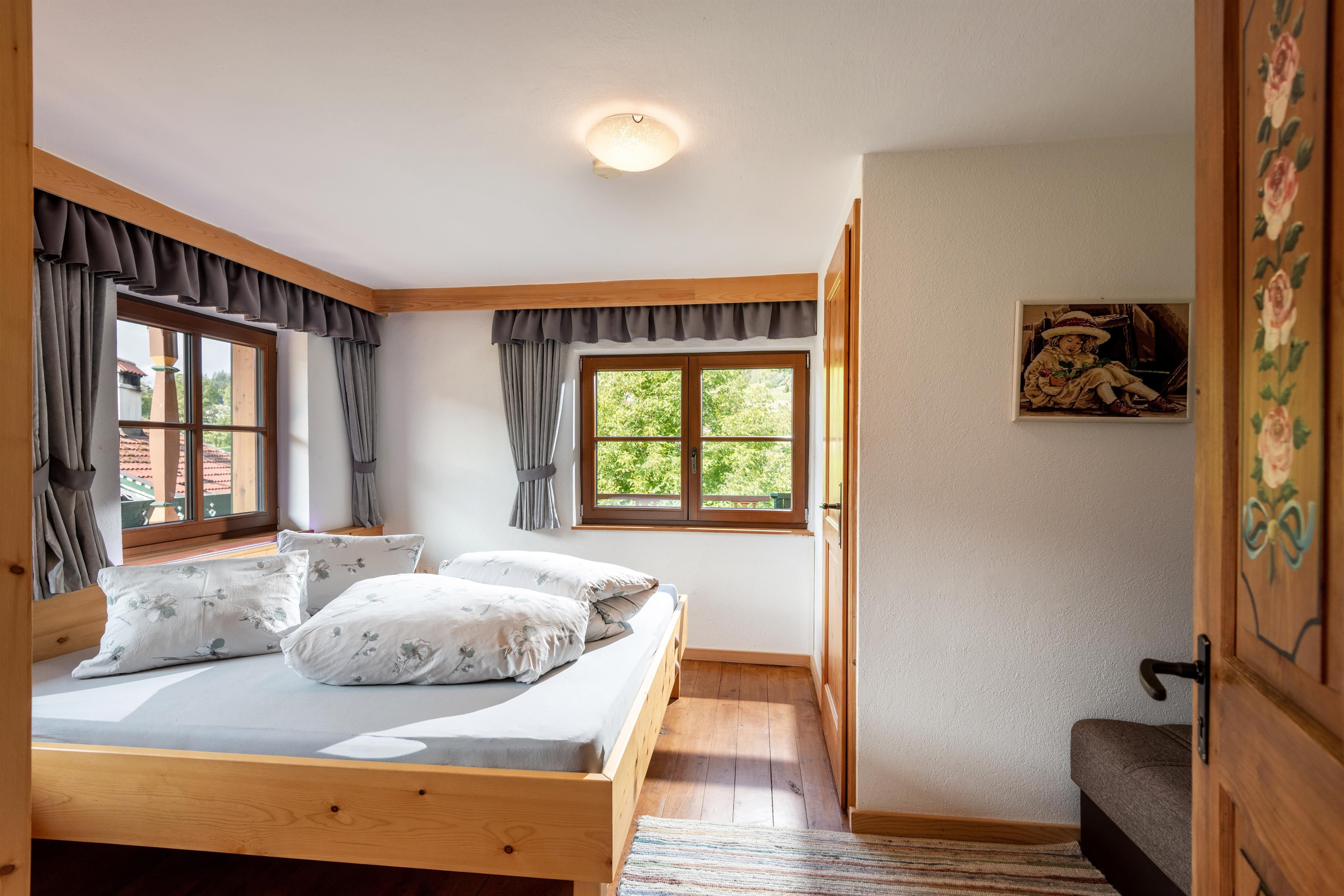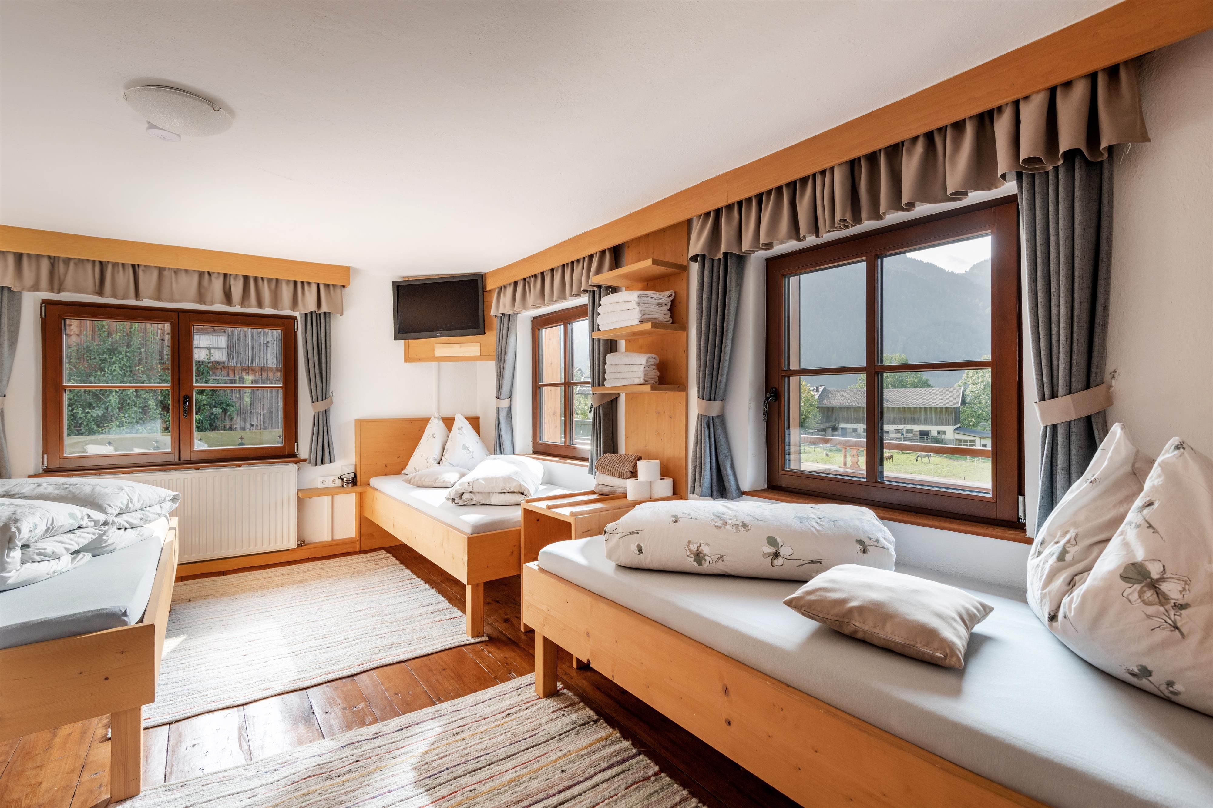 Unsere Ferienwohnung für 5 - 9 Personen befindet sich im 1. Stock unseres Hauses. Die Wohnküche ist mit Sitzecke für 9 Personen ausgestattet, es gibt 3 Schlafzimmer. Ein Schlafzimmer ist mit 1 Doppelbett und zwei Einzelbetten, das zweite Schlafzimmer verfügt über ein Doppelbett und einer Schlafcouch und das dritte Schlafzimmer hat ein Doppelbett. Jedes Schlafzimmer hat ein eigenes Bad mit Dusche und WC und verfügt über einen TV.