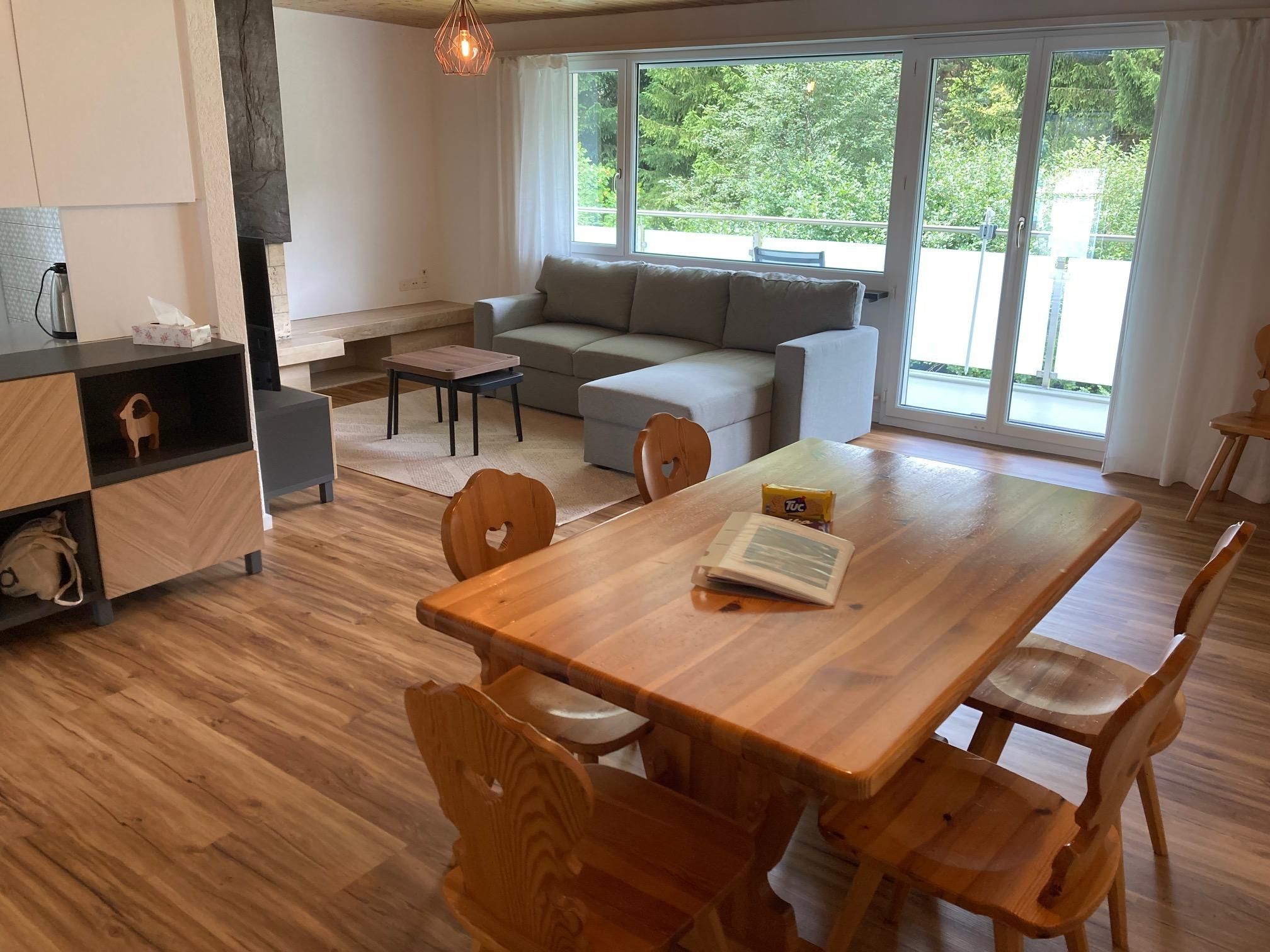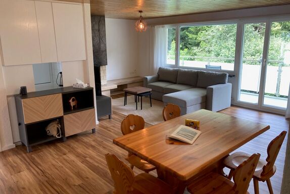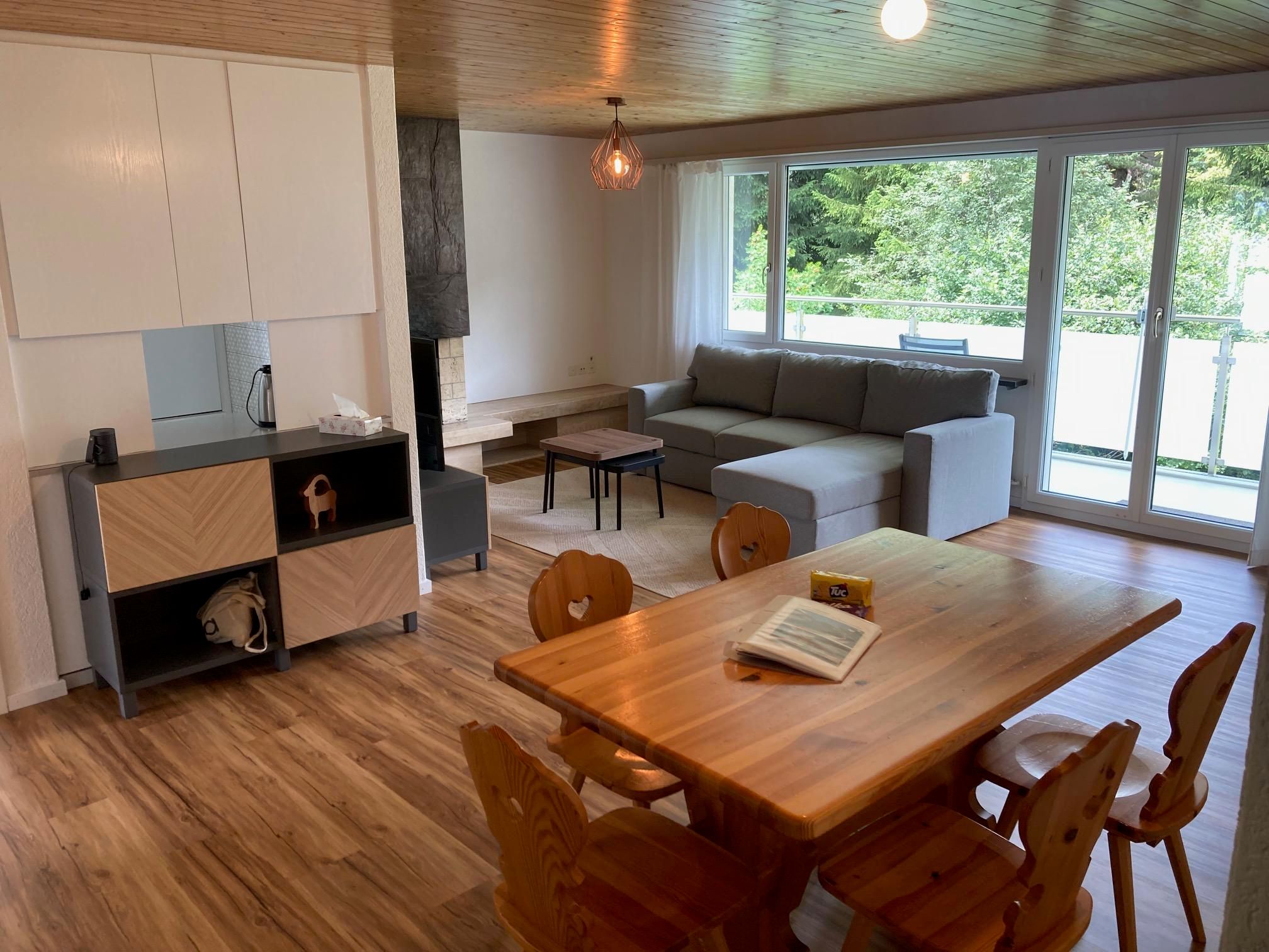 3.5 Zimmerwohnung in Mehrfamilienhaus. Ruhige, idyllische Lage mit schöner Aussicht. Balkon und Garten. Zentrale Lage, optimaler Ausgangspunkt für Wintersport und Wanderungen.