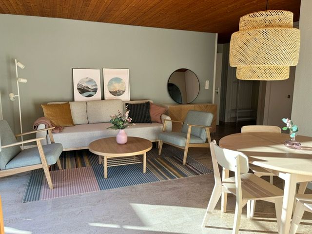 1 Schlafraum, Babybett, Babyhochstuhl, Backofen, Balkon, Fondue-Set, Haustiere nicht erlaubt, Internetverbindung, Kaffeemaschine, Kinderbett, Küche, Küche separat, Küchenwäsche, Kühlschrank, Nichtraucherzimmer-/wohnung, Raclette-Set, Radio, Schlafcouch, Tisch- und Küchenwäsche, Töpfe Pfannen Geschirr, TV, Wäschetrockner, Wäschetrockner im Haus, Waschmaschine, Waschmaschine im Haus, Wasserkocher, WiFi