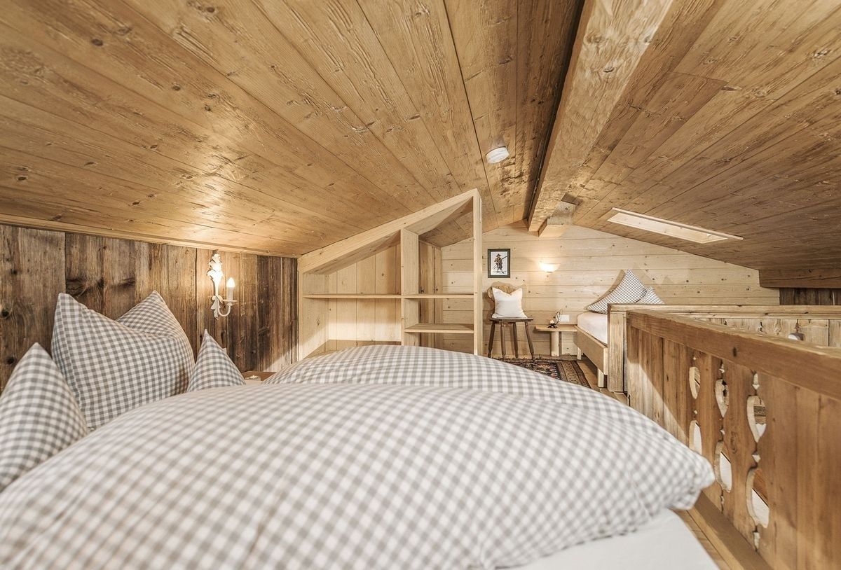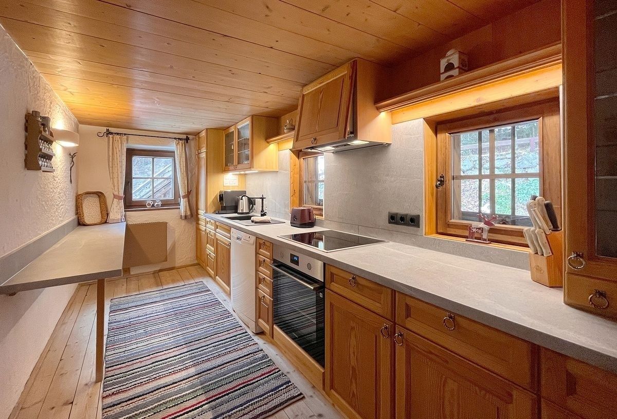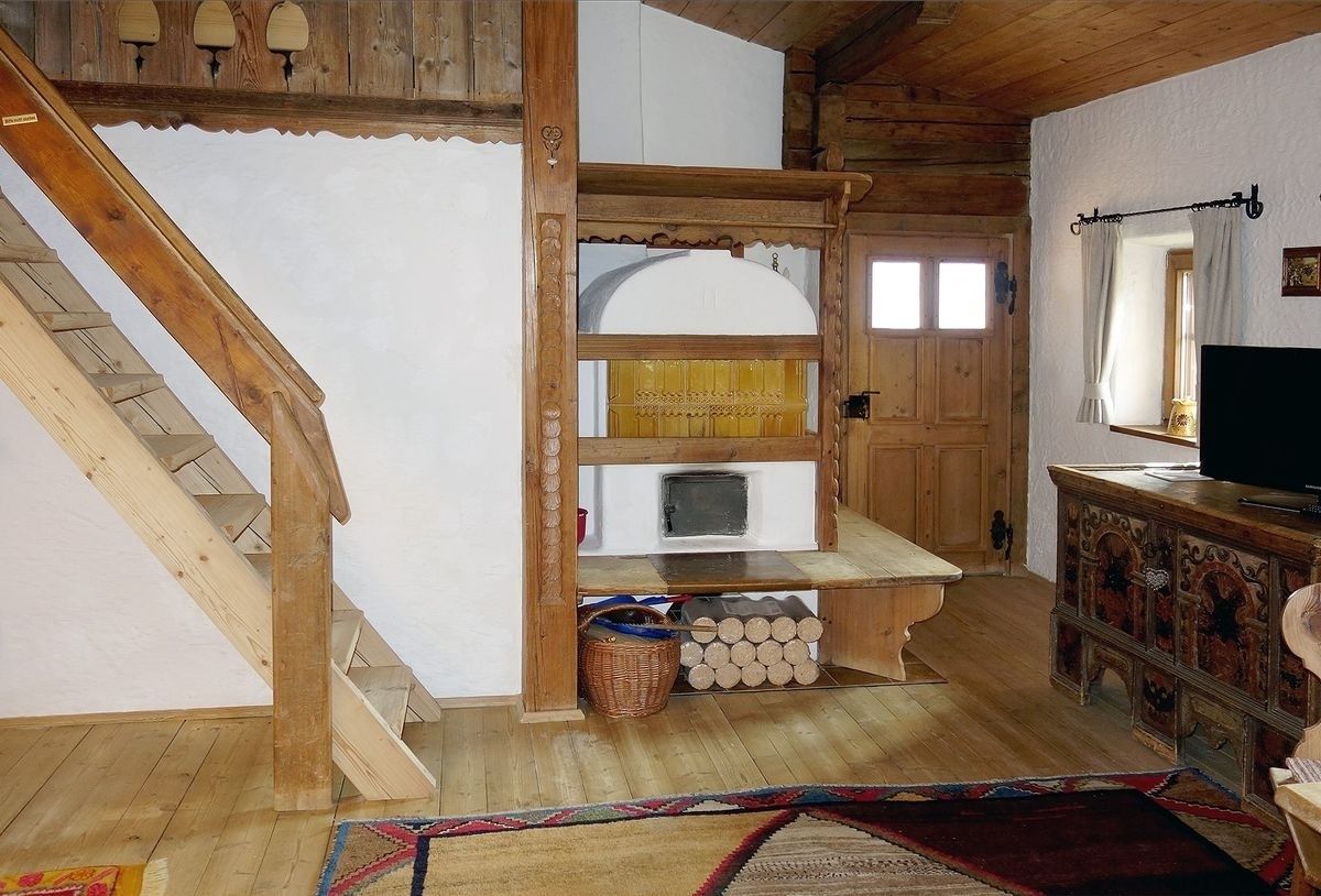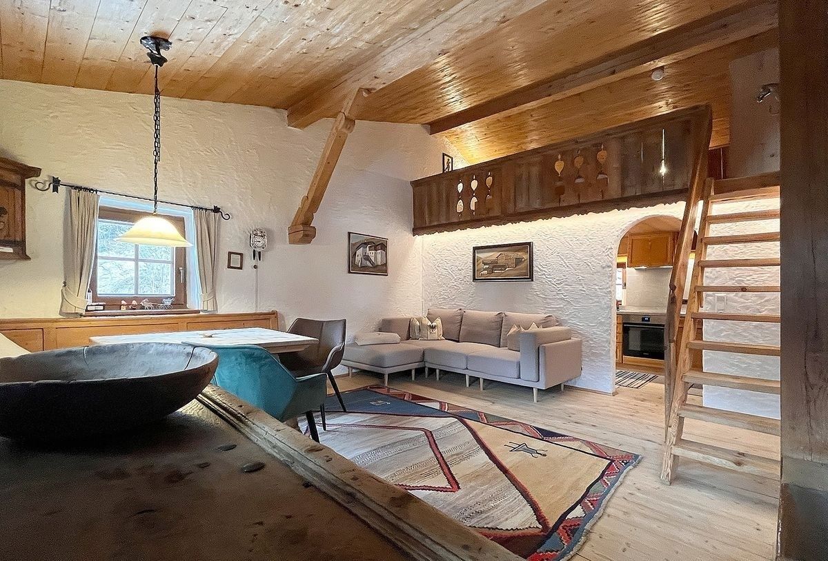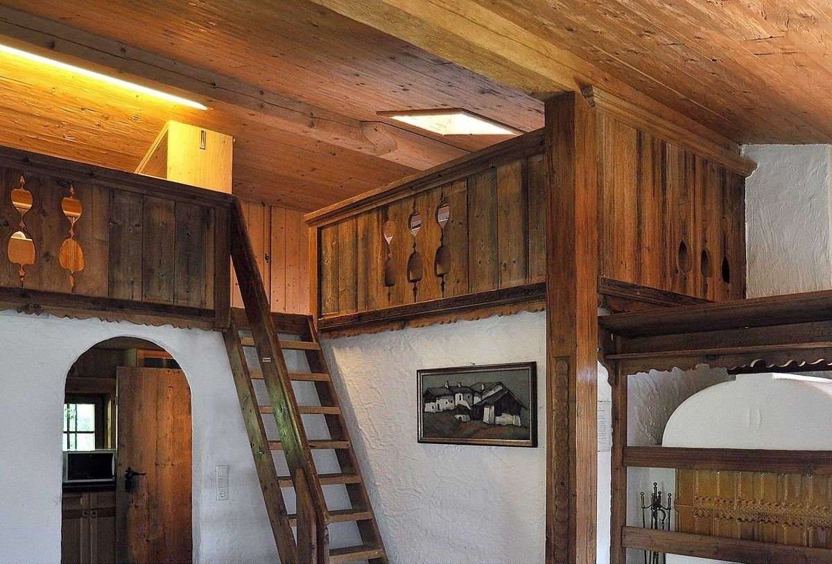 Im unteren Teil der Wohnung befinden sich die Küche, das Badezimmer, eine liebevoll eingerichtete Bauernstube mit Kachelofen und ausziehbarer Schlafcouch (zusätzlicher Schlafplatz für 1 Person). Auf der Glerie im Wohnzimmer gibt es zwei Doppelbetten, welche man über eine Leiter erreicht. Wohn- und Schlafbereich bilden somit zusammen einen schönen großen Raum mit direktem Zugang zu einem eigenen sonnigen Balkon, von dem Sie einen herrlichen Panoramablick genießen können.