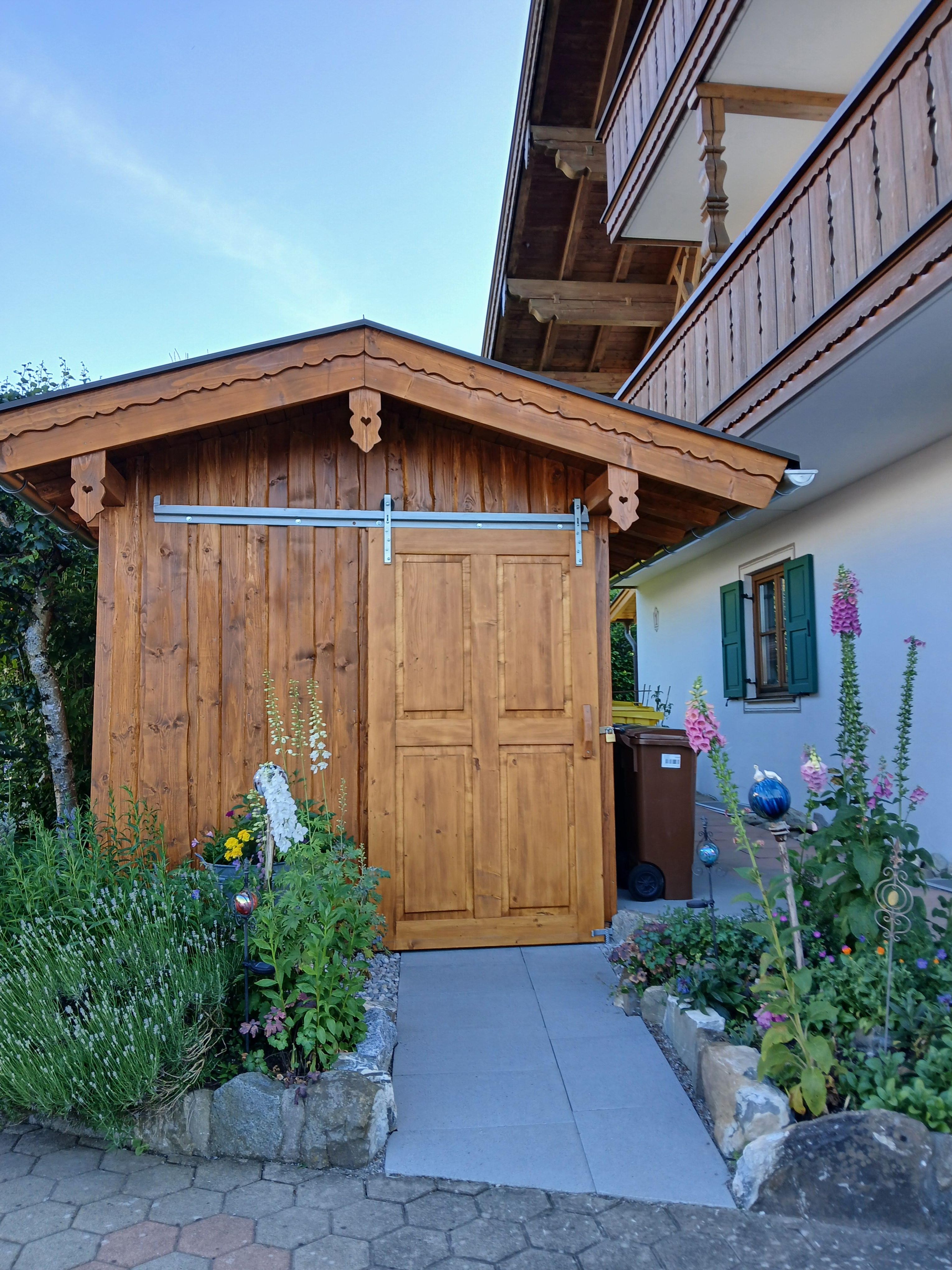 Für Ihre Fahrräder steht Ihnen unsere neu erbaute Fahrradhütte zur Verfügung. Besuche sind nur mit Rücksprache mit uns erlaubt.