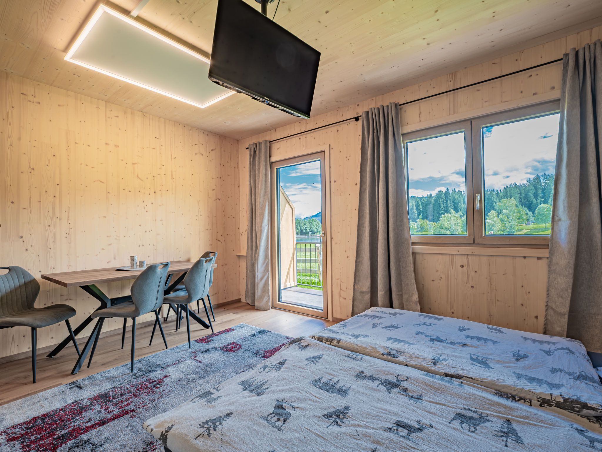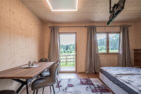 2 Zimmer, 2-Zimmer-Wohnung 30 m2. Schön und gemütlich eingerichtet: Wohn-/Schlafzimmer mit 1 Doppelbett (180 cm, Länge 200 cm), Esstisch und TV (Flachbildschirm). Offene Küche im Eingang (Backofen, 2 Glaskeramikplatten, Toaster, Wasserkocher, elektrische Kaffeemaschine). Dusche/WC. Heizung. Balkon. Balkonmöbel. Schöne Panoramasicht auf den See, die Berge und Hahnenkamm. Gratis. Bitte beachten: Nichtraucher-Unterkunft. Rauchmelder.