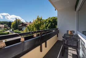 Die geräumige Ferienwohnung, welche im Sommer 2025 komplett modernisiert, renoviert und neu ausgestattet wurde, befindet sich in einem Mehrfamilienhaus im 1. OG auf der schönen, belebten Seestraße in Prien mit vielen Restaurants gleich ums Eck.