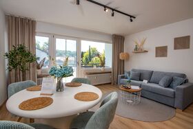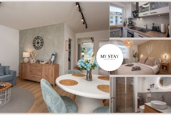 Die gut 54 qm große Wohnung mit Südbalkon, welcher zum Verweilen und Sonne tanken einlädt, befindet sich in einem Mehrfamilienhaus. Die Ferienwohnung, welche sich im 1. Stock befindet, wurde Mitte 2025 vollständig modernisiert, sowie renoviert und wartet mit nagelneuer Küche, 2 separaten Zimmern, modernem großen Bad mit begehbarer Dusche und einem freundlichen Eingangsbereich, alles hochwertig im modernen, freundlichen Boho-Stil eingerichtet, auf lebenslustige Gäste.