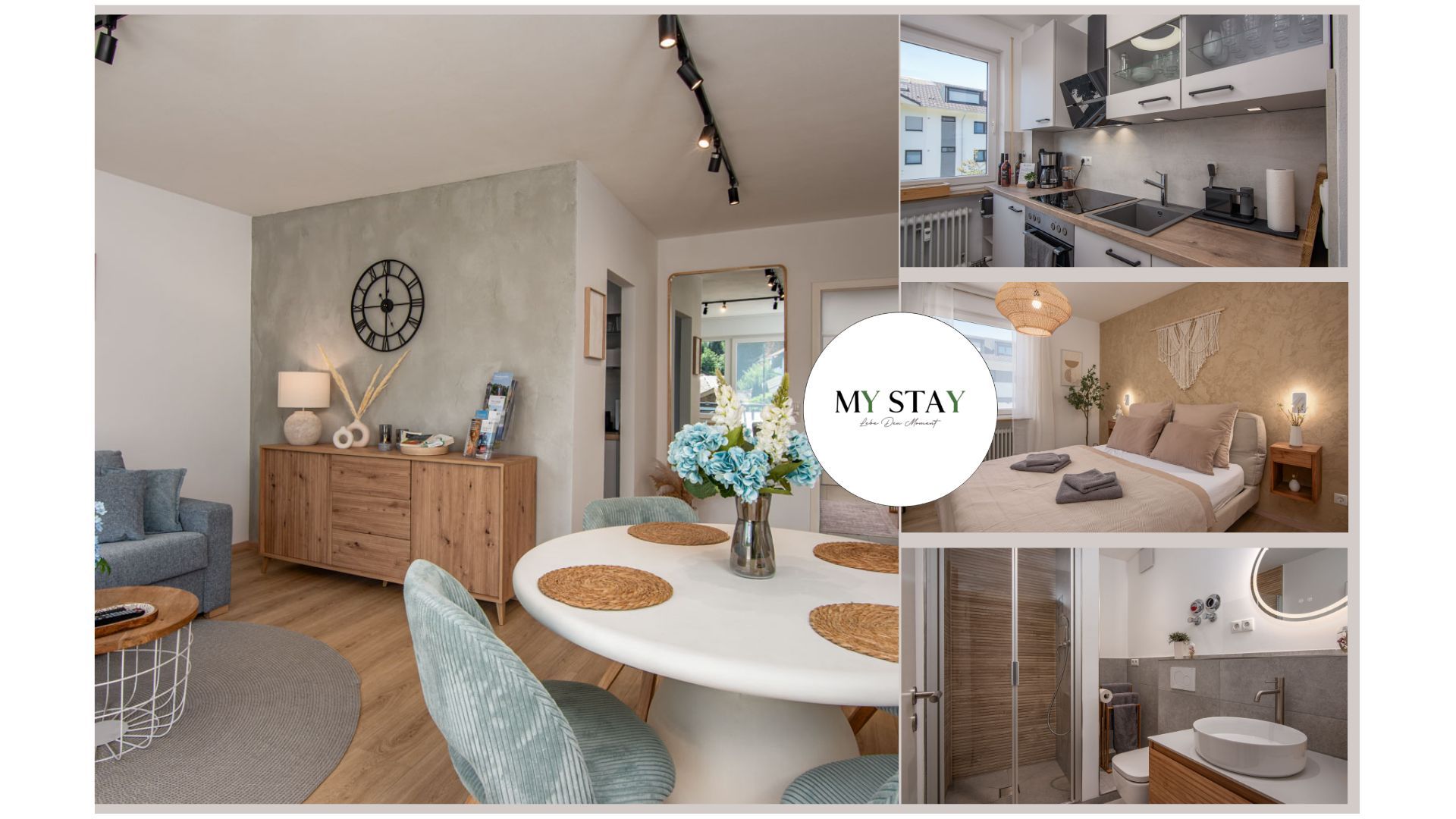 Lebe den Moment: Unser Lebensmotto findest du nicht nur in der Ausstattung der Wohnung wieder. Wir selbst wissen aus eigener Erfahrung nur allzu gut, wie schwer es oftmals im Stress des Alltags fallen kann die kleinen aber doch so entscheidenden Momente im Leben bewusst wahrzunehmen, ganz im Hier und Jetzt zu sein. Deshalb erwarten dich diese kleinen Lebenslust-Momente in deinem MY STAY-Apartment: Bei deiner ersten Tasse frisch aufgebrühten Kaffee startest du auf dem Sonnenbalkon ganz bewusst in den Tag. Bei einer der zahlreichen Sport- oder Freizeitaktivitäten, sowie den bekannten Sehenswürdigkeiten rund um den Chiemsee und in der Umgebung, schüttelst du den Stress und die Sorgen des Alltags von dir ab und hast im Anschluss daran die Gelegenheit dich deinem Partner und/oder Familie ganz gezielt zu widmen. Dazu bietet dir unsere Unterkunft Spiele, Bücher und Übungen für Groß und Klein bspw. zum Thema Achtsamkeit, Persönlichkeitsentwicklung oder Kommunikation.