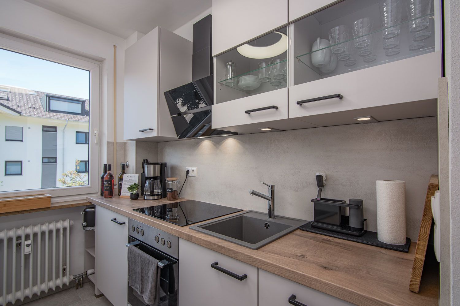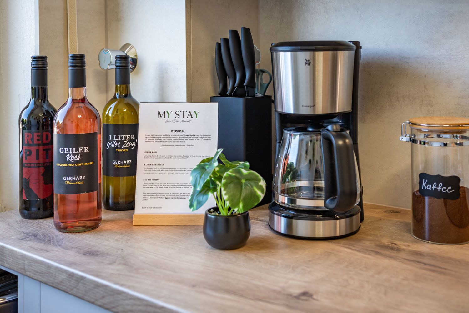 Das Thema Nachhaltigkeit liegt uns am Herzen: Deshalb versuchen wir soweit es uns möglich ist, unsere Einrichtung, sowie Verbrauchsgegenstände in der Wohnung aus nachhaltigen Materialien zu gestalten. Unsere Bio-Teeauswahl, aus welcher du dich vor Ort kostenfrei bedienen darf, stammen aus der oberbayerischen Manufaktur von Herbaria. Der Kaffee wird in einem kleinen Familienbetrieb regional produziert und geröstet. Wir verzichten daher, soweit wie möglich, außerdem auf Wegwerf- oder Einwegartikel.