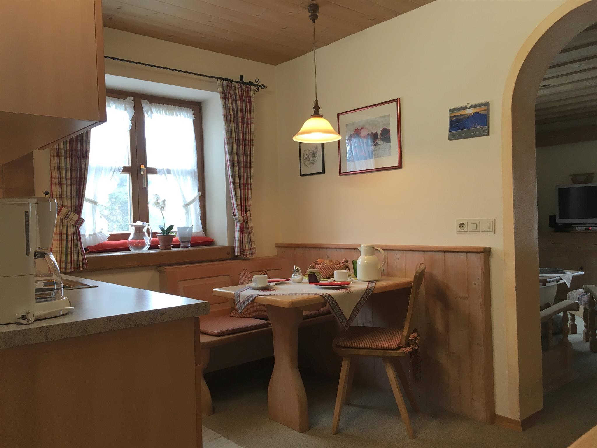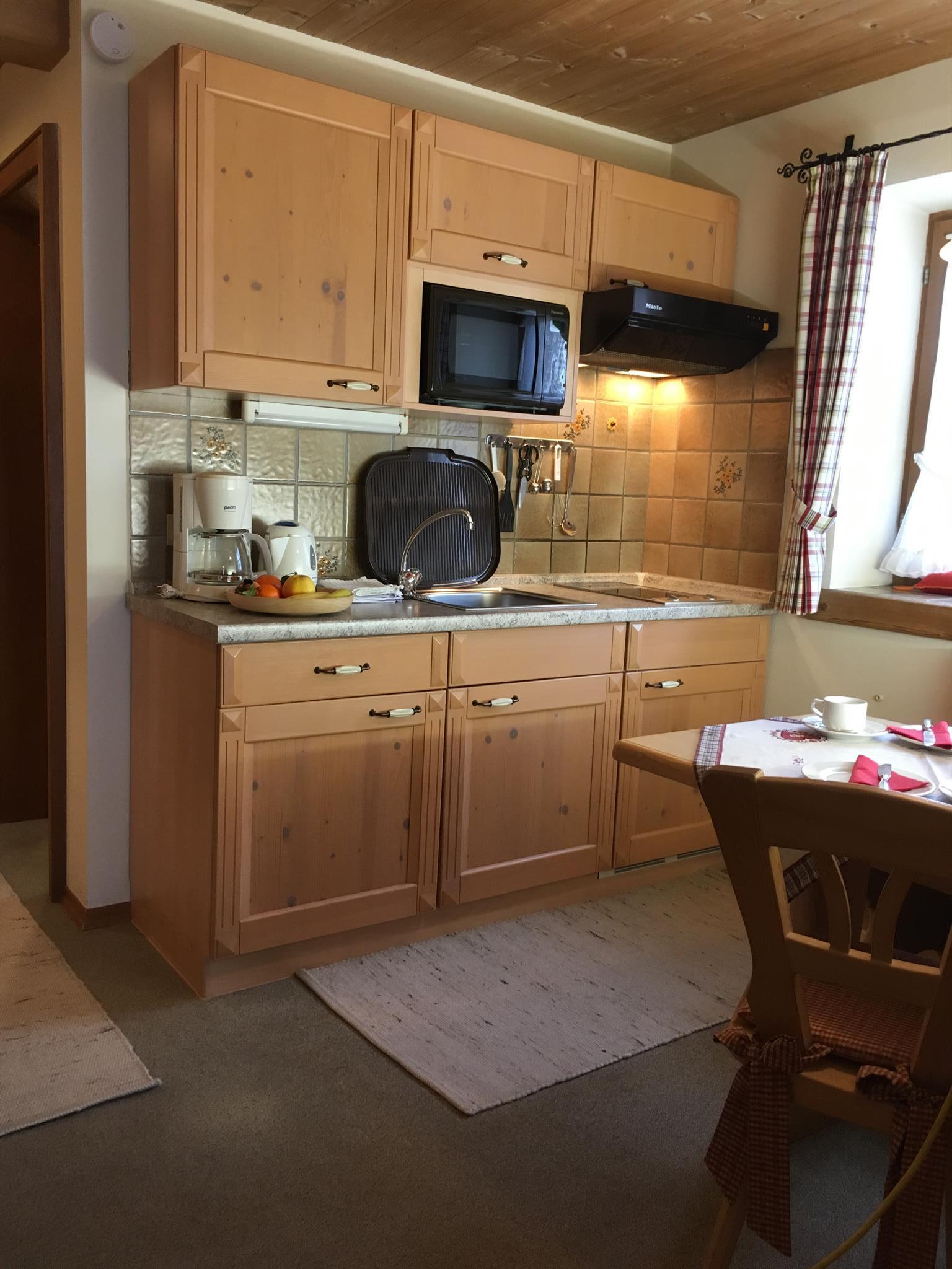 Appartment 35 qm gemütlicher Wohnschlafraum, 2 feststehende einzelne Betten, Ausziehsofasofa und Sessel Sat.Flachbildfernseher Stereo Radio.sep.Küchegut augestattet 2 Ceranplatten, Mikrowelle mit Grillfunktion kleine Essecke, Dusche/WC,Fön. Sonnige Terrasse mit Bergblick. Für Einzelpersonen geeignet. Für Familien mit größeren Kindern können beide App.zusammen gebucht werden. Preis auf Anfrage.