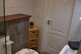 Im Bad bieten wir eine Dusche und WC und weiteren Utensilien wie Haarföhn und Schminkspiegel. Das Schlafzimmer ist mit einem kuscheligen 140x200 Bett ausgestattet.