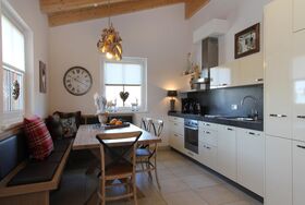 Das stilvolle Penthouse besteht aus zwei großen Schlafzimmern mit jeweils einem eigenen Badezimmer mit Dusche. Über den großen Flur gelangt man auf den “Heuboden”. Dieser Raum bietet nochmals vier zusätzliche Einzelbetten. Auch das dritte Badezimmer lässt sich über den Flur erreichen und verfügt über eine Dusche. Das Wohnzimmer ist großzügig konzipiert mit einem großen Esstisch mit Eckbank und einer offenen Design-Küche. In der Sitzecke, kann man es sich am offenen Kamin gemütlich machen. Den großen Balkon erreicht man über das Wohnzimmer.