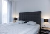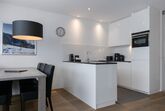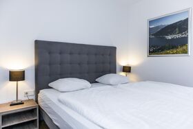 Das Apartment besteht aus zwei Schlafzimmern mit jeweils einem Doppelbett. Zusätzlich gibt es ein Badezimmer mit Badewanne oder Dusche und WC. Das geräumige Wohnzimmer verfügt über einen großen Esstisch und eine offene Designerküche. Der Balkon mit herrlichem Seeblick ist vom Wohnzimmer aus zugänglich.