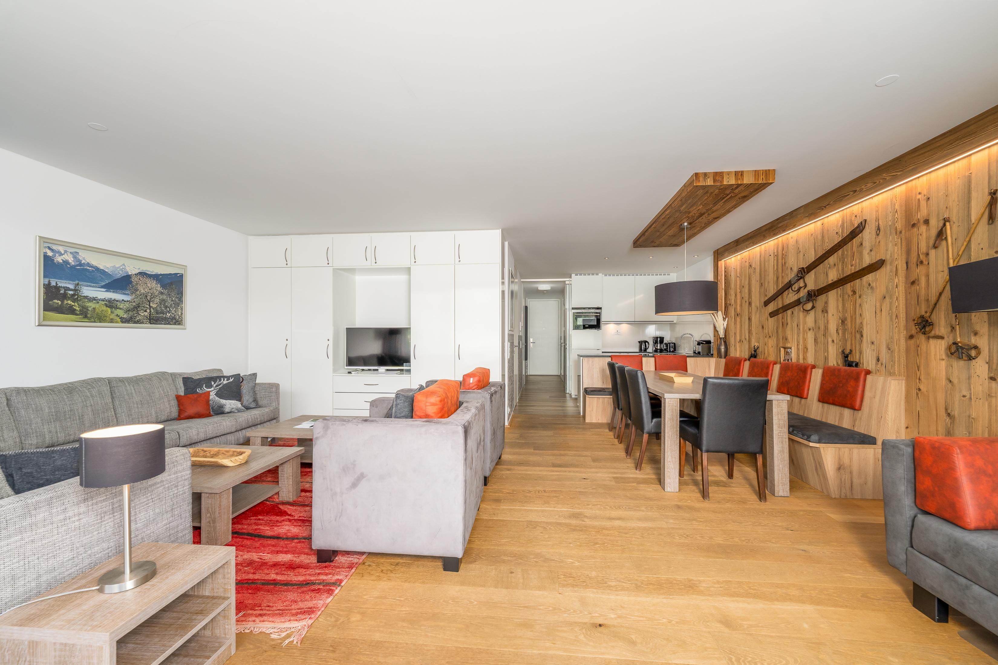 Die Residence Bellevue verfügt über Zimmer und Suiten mit 2 bis 4 Schlafzimmern sowie Balkon oder Terrasse mit See- und Bergblick. Die Innengestaltung überzeugt mit hochwertigen Materialien, stilvollem Design und einem großzügigen Raumgefühl. Im Haus befinden sich 2 Saunen, Privatparkplätze, ein beheizter Skikeller und eine Waschküche. Eine geräumige, komplett ausgestattete Küche und kostenloses WLAN runden das Angebot ab.