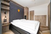 Die Doppelbetten in den beiden Schlafzimmern der Suite, sowie die integrierte Schlafcouch im Wohnbereich bieten Platz für bis zu sechs Personen. Es erwarten Sie zwei Badezimmer mit Dusche und WC und ein offener, hochwertig möblierter Wohnbereich mit einer modernen Küche. Die Holzelemente in der Suite lassen Sie den alpinen Lifestyle spüren. Der gemütliche Esstisch und der private Balkon sind der perfekte Platz, um ein gutes Glas Wein zu genießen und einen spannenden Tag in den Bergen Revue passieren zu lassen.