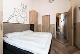 Im Penthouse im obersten Stock ist genug Platz für bis zu acht Personen. Es erwarten Sie drei moderne Schlafzimmer mit Doppelbetten und drei Badezimmer mit Dusche und WC. Eine Schlafcouch, ein gemütlicher Esstisch und eine voll ausgestattete moderne Küche befinden sich im großen Wohnbereich, der das Herzstück des Penthouses ist. Eine private Sauna sorgt dafür, dass Entspannung in Ihrem Urlaub nicht zu kurz kommt. Den privaten Balkon mit weiteren Sitzmöglichkeiten können Sie direkt vom Wohnbereich aus betreten. Er ist der perfekte Ort, um die Sonne zu genießen.