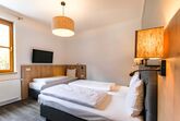 Das Apartment TOP 4 verfügt über eine gemütliche Einrichtung und eine private Sauna. Es gibt vier Schlafzimmer, von denen in zwei Schlafzimmern ein Doppelbett steht. Die anderen Schlafzimmer beinhalten zwei Einzelbetten bzw. ein Etagenbett für zwei Personen. Das Badezimmer ist mit einer Badewanne ausgestattet. Auch eine Waschmaschine und ein Trockner befinden sich im Apartment. Im Wohnzimmer warten eine Sitzecke mit Schlafcouch, ein großer Esstisch und eine moderne, offene Küche. Vom Wohnzimmer aus hat man direkten Zugang zu einem der zwei Balkone.