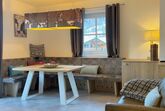 Apartment 12 hat einen eigenen Eingang und ist mit hochwertiger Einrichtung ausgestattet. In der voll ausgestatteten Küche findet man eine Vorratskammer, einen großen Kühlschrank, einen Geschirrspüler und einen Induktionsherd. Der Wohnbereich mit großem Esstisch lädt zum Entspannen ein. Die beiden Schlafzimmer bieten nicht nur komfortable Betten, sondern auch eine Aussicht auf die umliegende Bergwelt. Im Apartment befinden sich zwei Badezimmer, eines mit Badewanne und eines mit Dusche.