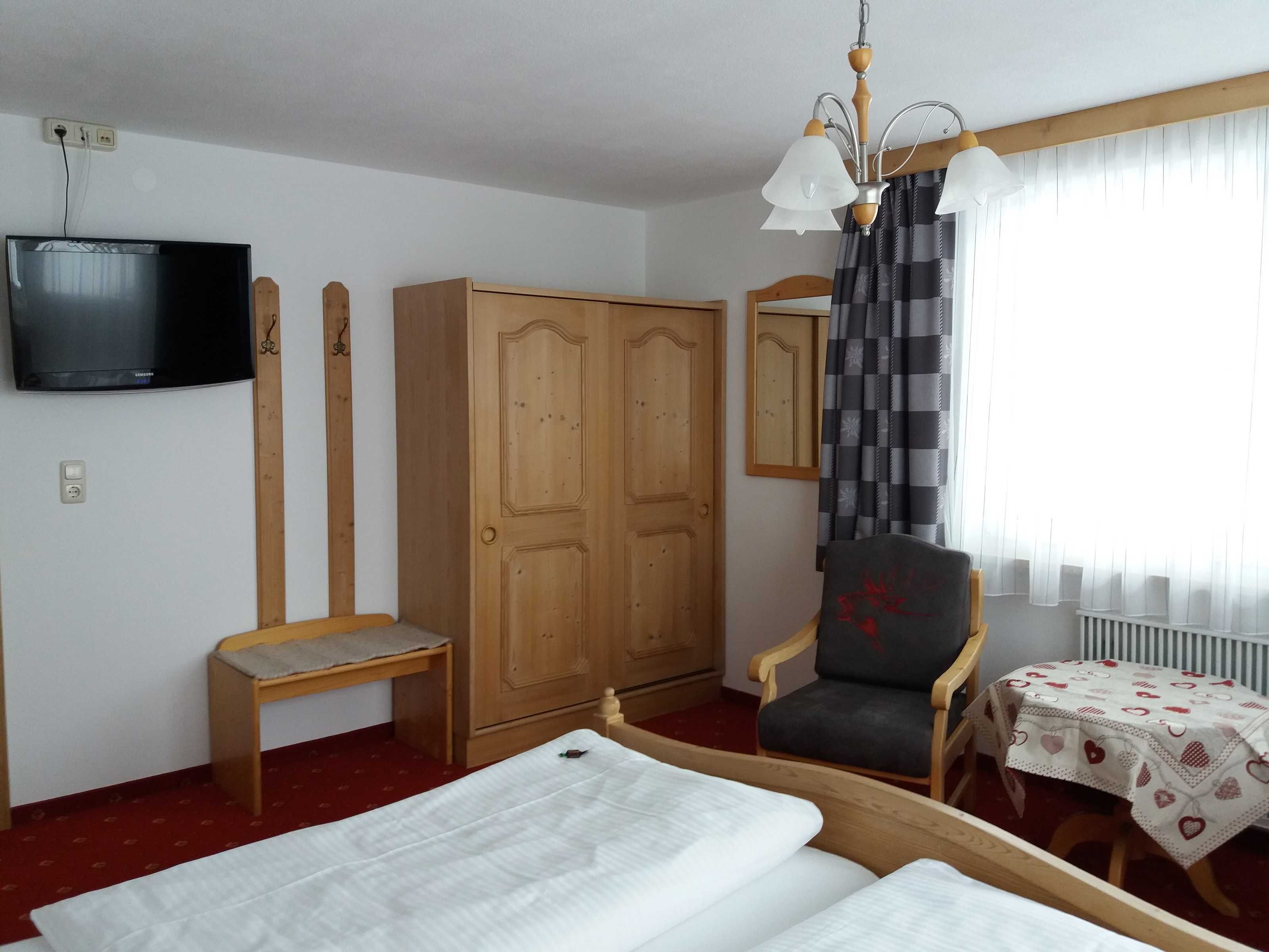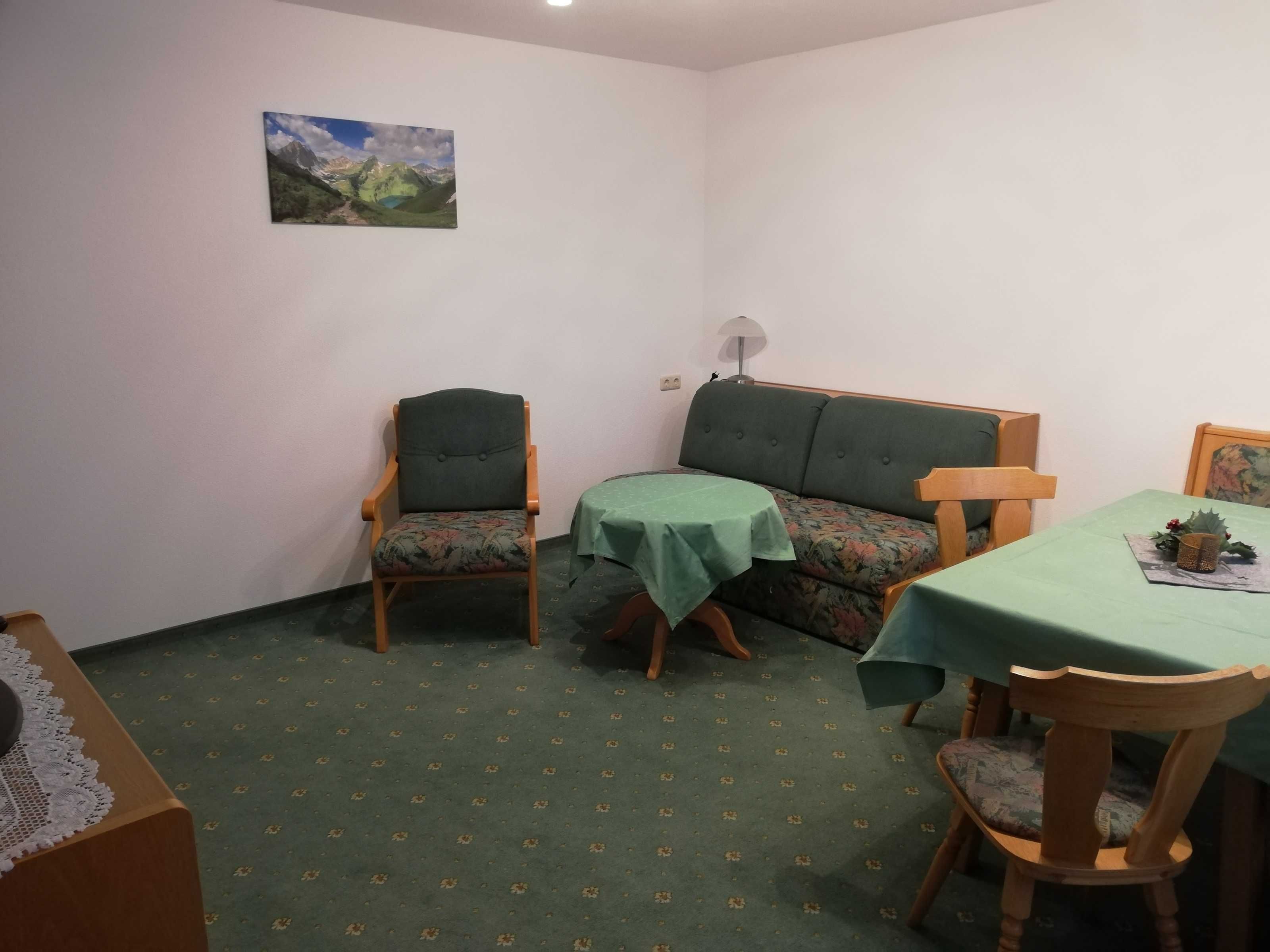 In der hellen, wohnlich und gemütlich eingerichteten Ferienwohnung mit ca. 58 m² gibt es zwei getrennte Schlafzimmer, ein Doppelzimmer mit eigenem Bad mit Dusche, WC und Fön sowie ein Einzelzimmer mit Tageslichtbad mit Dusche, WC und Fön. Hand- und Badetücher liegen bereit. Das Wohnzimmer mit gemütlicher Couch lädt zu entspannten Stunden ein, am Essplatz für vier Personen genießen Sie die Morgensonne und den Blick Richtung Rot-Flüh und Gimpel. Die praktische, helle Küche ist ausgestattet mit Zwei-Platten-Herd, Backofen, Geschirrspüler, Kühlschrank, Toaster, Wasserkocher und Kaffeemaschine. Über Wohnzimmer und Schlafzimmer gelangen Sie auf den möblierten Ost- und Südbalkon. Viele Gäste nutzen die Großzügigkeit der Wohnung auch zu zweit, um wie zu Hause getrennte Schlafzimmer zu haben.