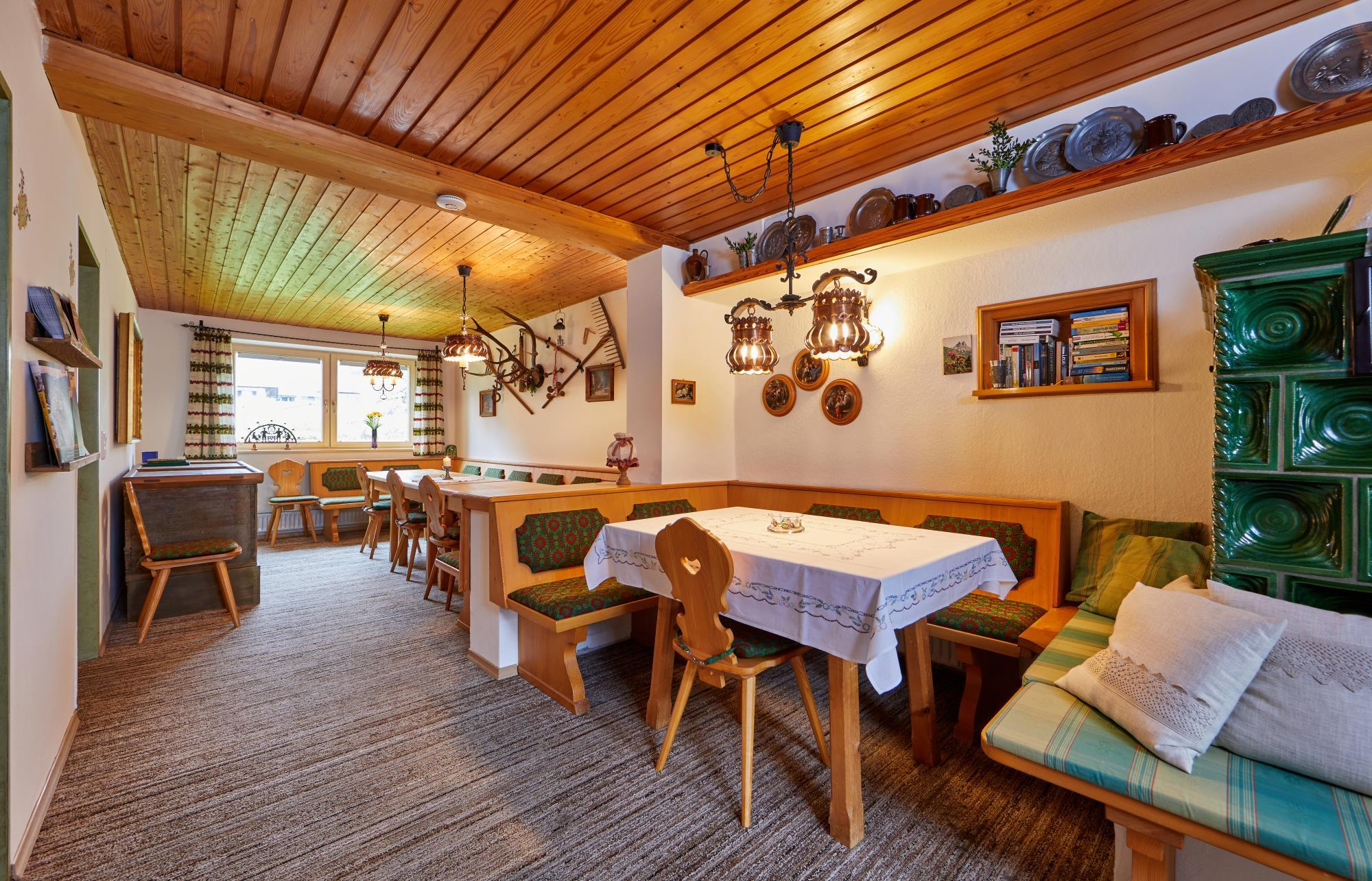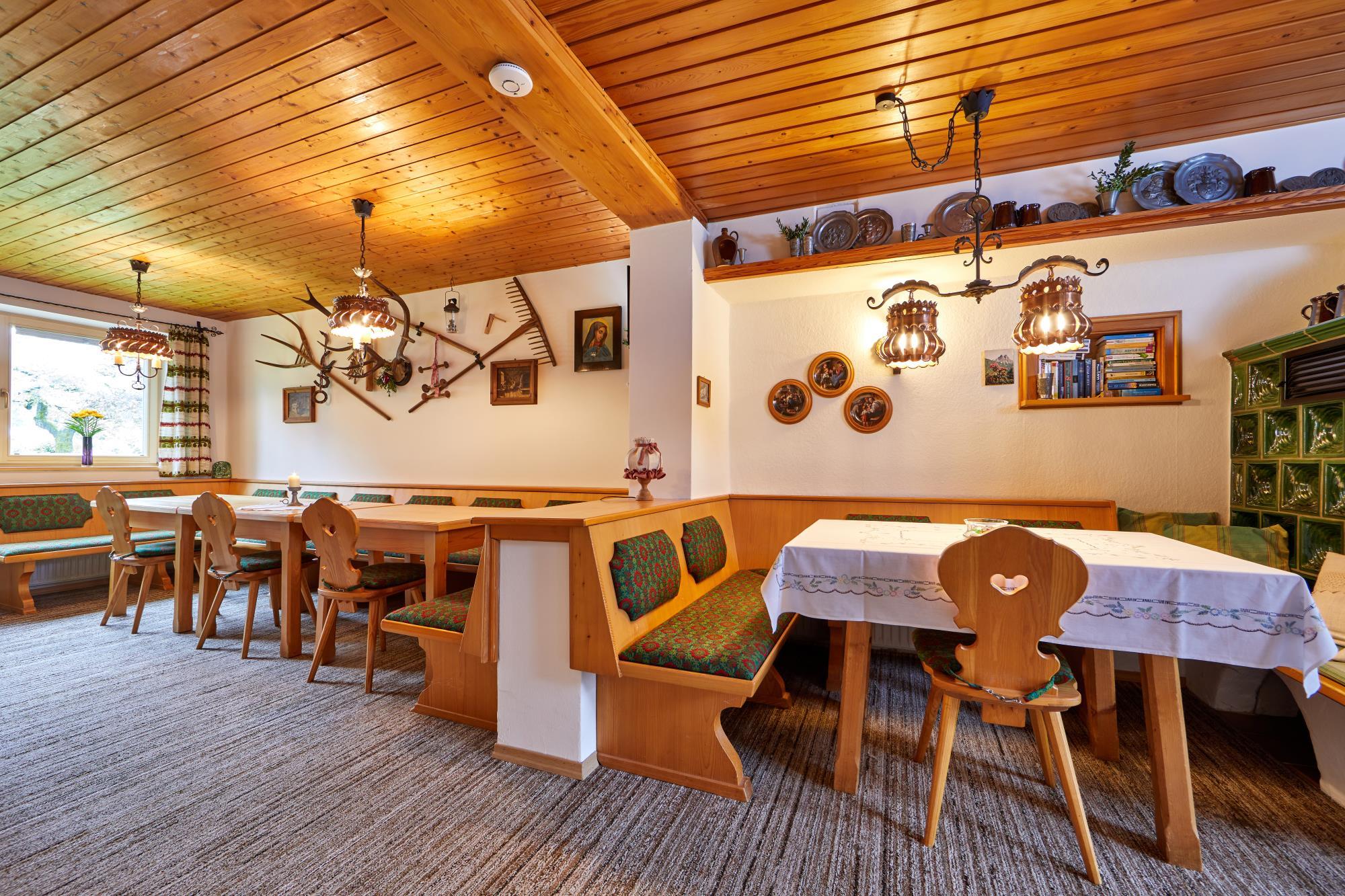 Wir bieten zwar Übernachtung ohne Frühstück an, jedoch Brotservice und das Ammergauer Alpen Frühstück sind zubuchbar. Das Brotservice ist kostenpflichtig, das Frühstück gegen einen Aufpreis von 13,-- € pro Person, pro Tag ist auch möglich, nach Absprache mit dem Gastgeber. Kaffee und Tee stehen unseren Gästen kostenlos zur Verfügung.