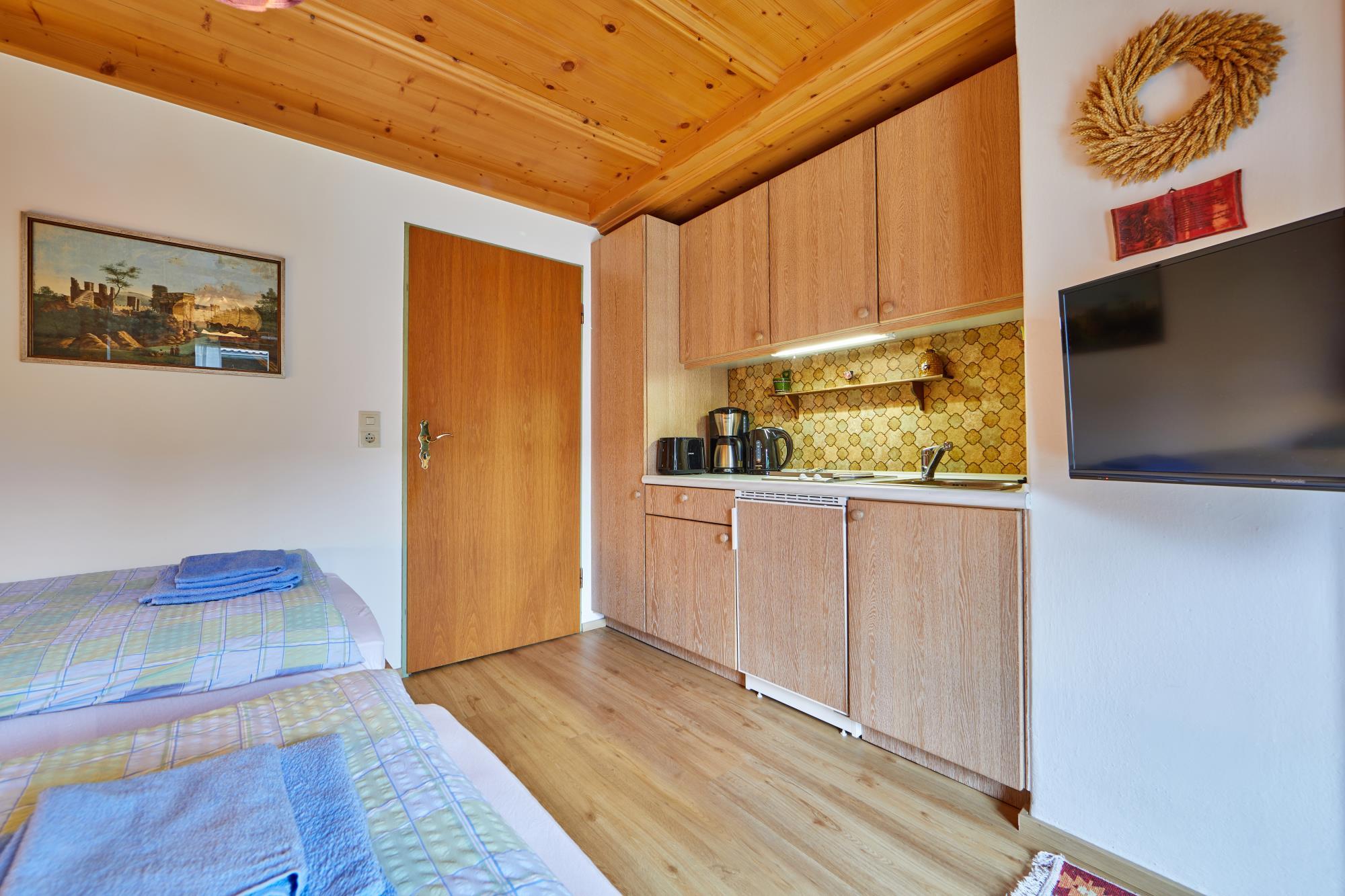 Unsere kleinste Wohnung (1-Raum-Appartement) befindet sich im Erdgeschoss in unserem Haus in der Breitenau 5. Sie hat eine Größe von ca. 20m² und bietet Platz für 2 Personen.