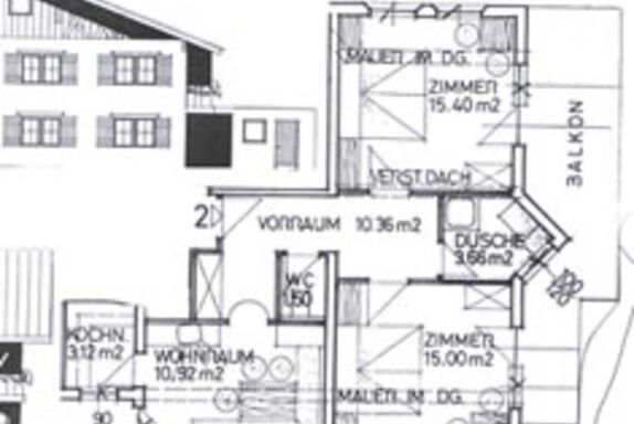 ca. 60 m² groß: Vorraum, 2 Schlafräume mit jeweils 1 Zustellbett, Wohnraum, Kochnische, Dusche/WC separat.
