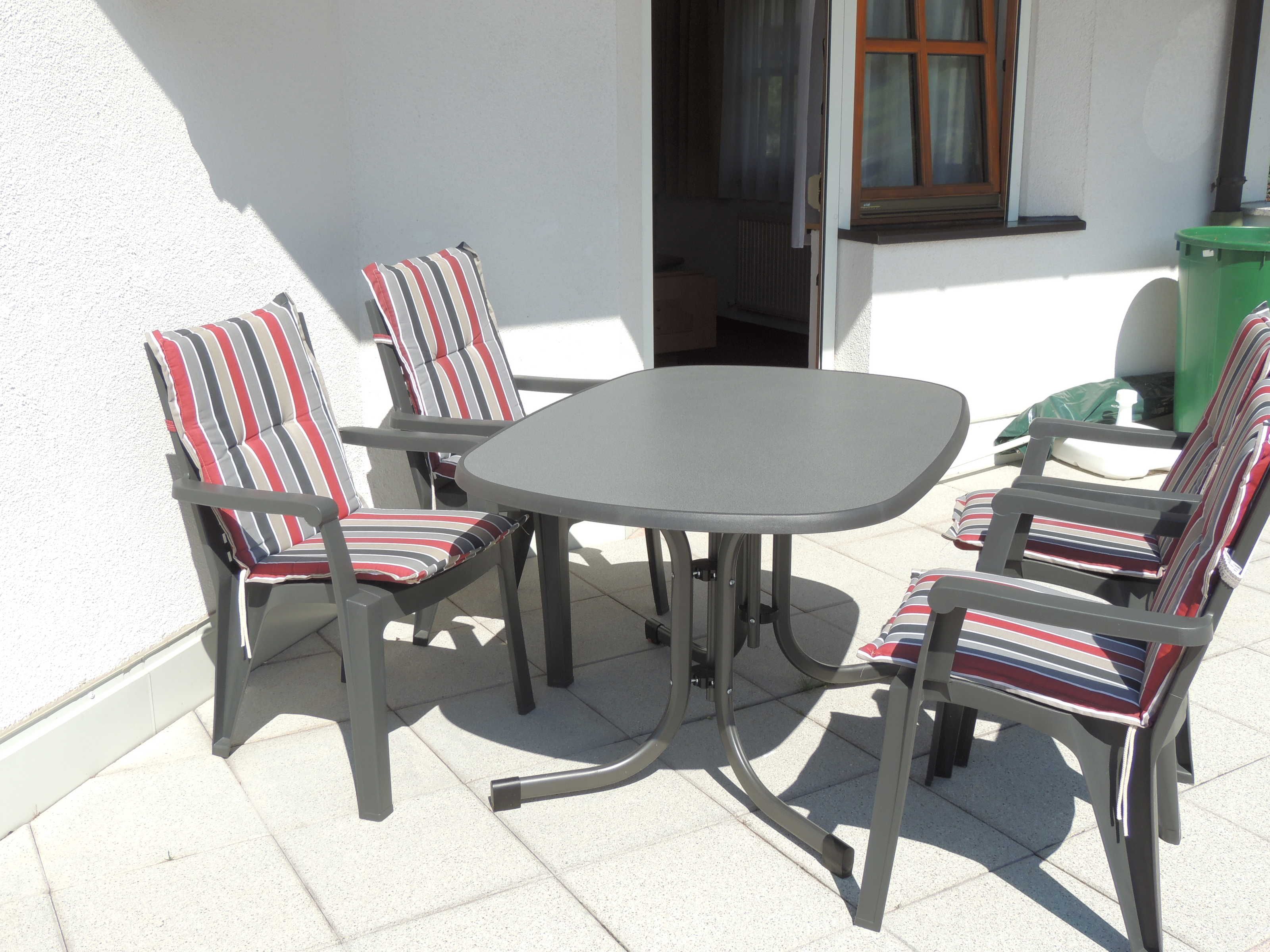 1 Ost und 1 Südbalkon sowie eine Terrasse (42 m²) nach Süden mit gemütlichen Sitzmöbeln