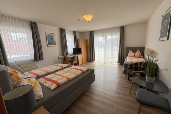 Seit Generationen führen wir mit Herz und Leidenschaft unser familiäres Gästehaus im malerischen Fränkischen Seenland – idyllisch gelegen am ruhigen Ortsrand von Hohenweiler, nur einen Kilometer vom Großen Brombachsee entfernt. Unsere liebevoll sanierten Zimmer und Apartments sind allergikerfreundlich, komfortabel ausgestattet und bieten Erholung für die ganze Familie. Während sich die Kleinen auf dem Spielplatz austoben, können die Großen entspannt die Natur genießen. Radfahrer sind bei uns ebenso willkommen: Eine abschließbare Fahrradgarage mit E-Bike-Ladestation, Werkzeug und Kompressor steht bereit. Nachhaltigkeit liegt uns am Herzen – mit unserer Hackschnitzelheizung und der hauseigenen PV-Anlage leisten wir einen Beitrag zum Umweltschutz. Persönlicher Service, individuelle Ausflugstipps und echte Gastfreundschaft sorgen dafür, dass Sie sich vom ersten Moment an wohlfühlen. In unserem Hofladen finden Sie hochwertige Produkte aus eigener Herstellung sowie von regionalen Partnern – frisch, ehrlich und mit Liebe ausgewählt. Unsere Apartment- oder Ferienwohnungsgäste können gegen Aufpreis von 12,50 Euro pro Person/Tag (Kinder 8,00 Euro) am reichhaltigen Frühstücksbuffet teilnehmen. Ob Business, Kurzurlaub oder Familienferien: Bei uns sind Sie genau richtig.