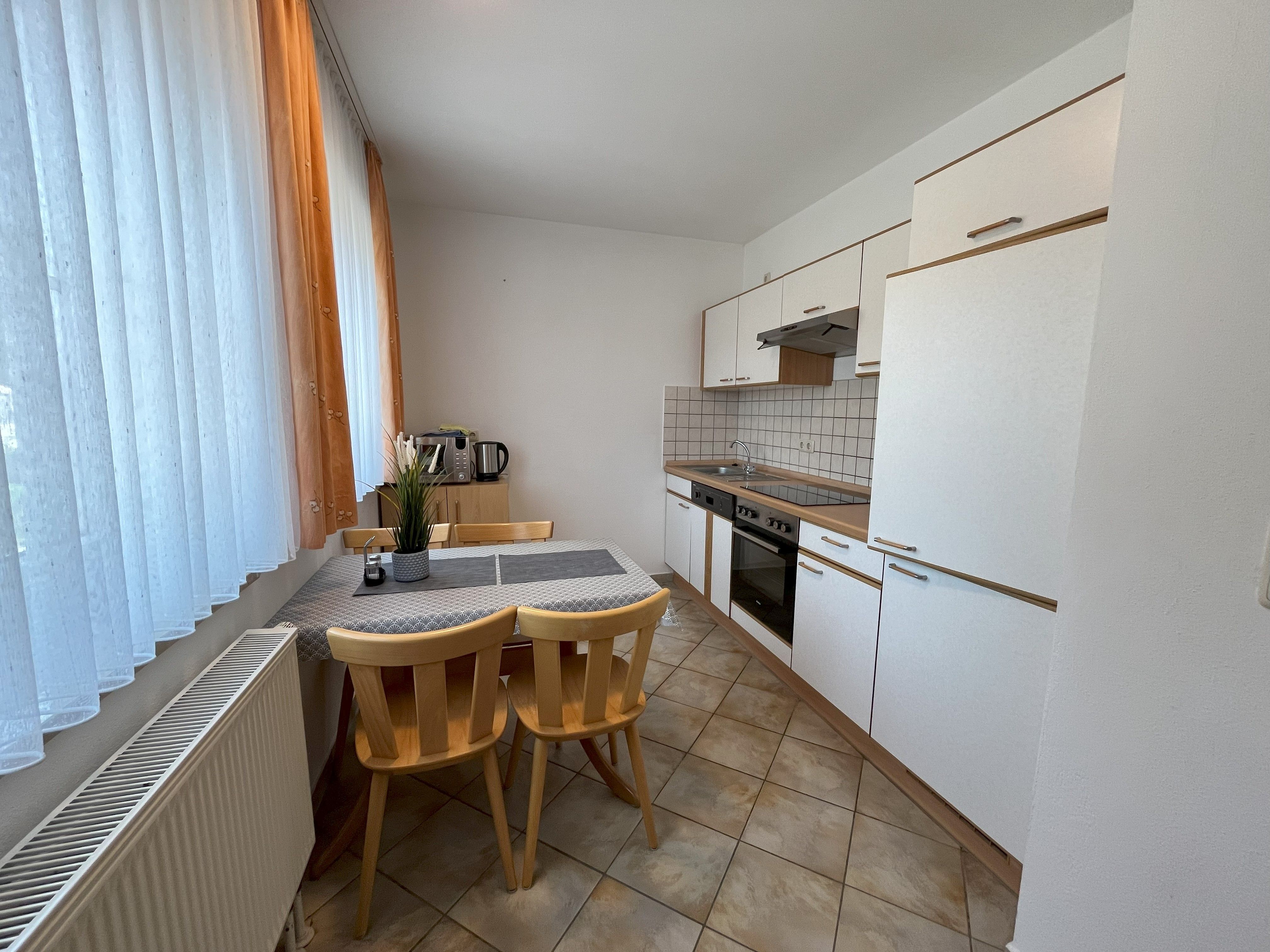 Dieses gemütliche Apartment im 1. Obergeschoss bietet auf ca. 42 m² einen kombinierten Wohn- und Schlafbereich mit einem Doppelbett sowie einem Einzelbett. Der nach Süden ausgerichtete Balkon lädt zum Verweilen ein und bietet einen herrlichen Blick ins Grüne. Die gut ausgestattete Küche verfügt über Cerankochfeld, Backofen, Mikrowelle, Geschirrspüler und mehr – ideal für Selbstversorger. Im Tageslichtbad erwarten Sie Dusche, WC und Haartrockner. Das Nichtraucherapartment ist allergikerfreundlich und mit kostenfreiem WLAN, SAT-TV und einem Safe ausgestattet. Zur gemeinschaftlichen Nutzung: Grillplatz, Trampolin, Kinderspielplatz, Waschmaschineund Trockner sowie eine abgeschlossene Fahrradgarage mit E-Bike-Ladestationen.